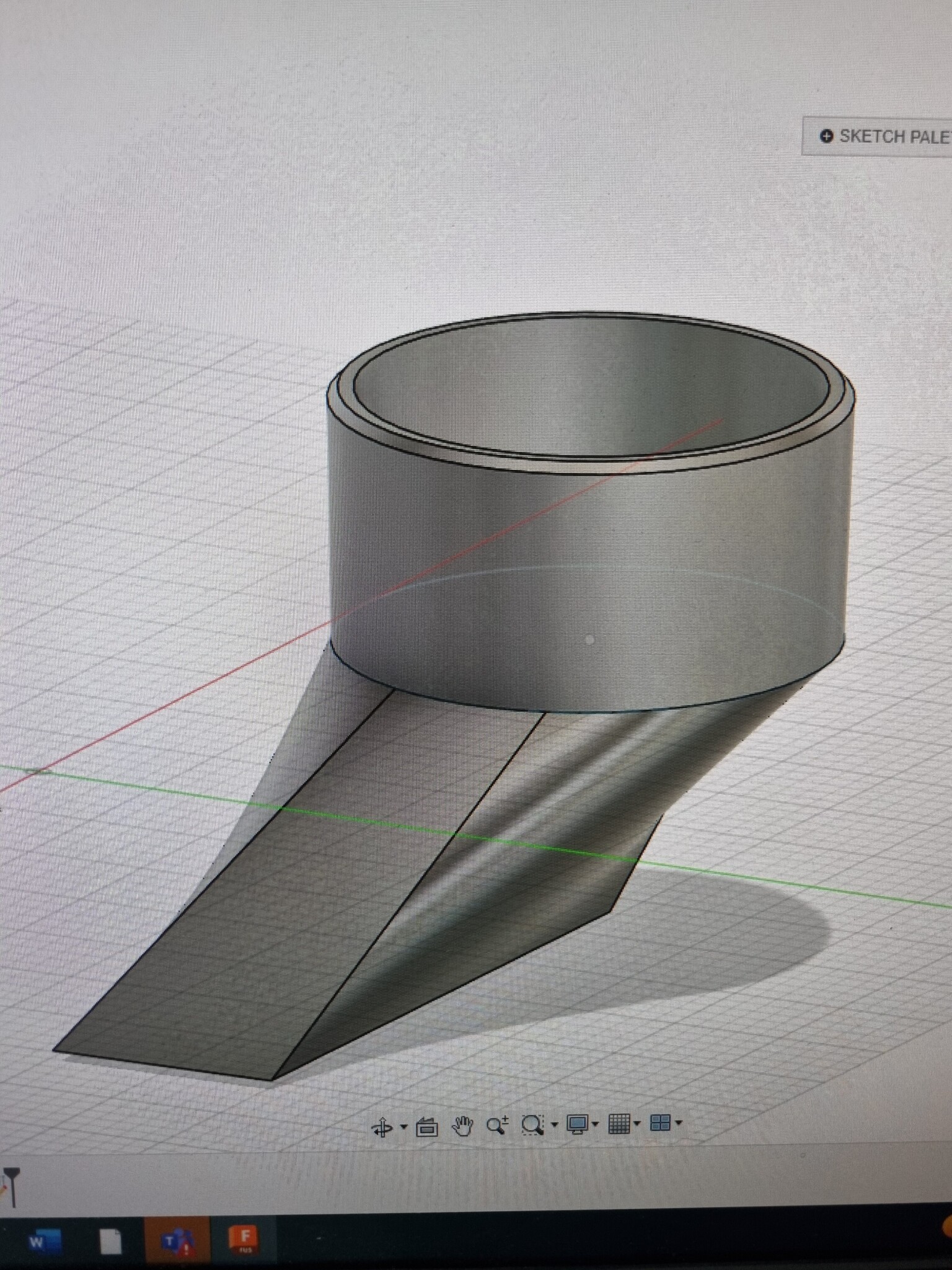 Ritade denna alltså i 3 delar, min bambulab A1 kan printa 256x256x256mm och största delen är 250mm hög. Hade bara röd PLA hemma, men tänkte förfina mina Fusionkunskaper längre fram genom att förbättra designen, och kanske kapsla in hela klingan om det verkar behövas. Då blir det nog i svart PETG