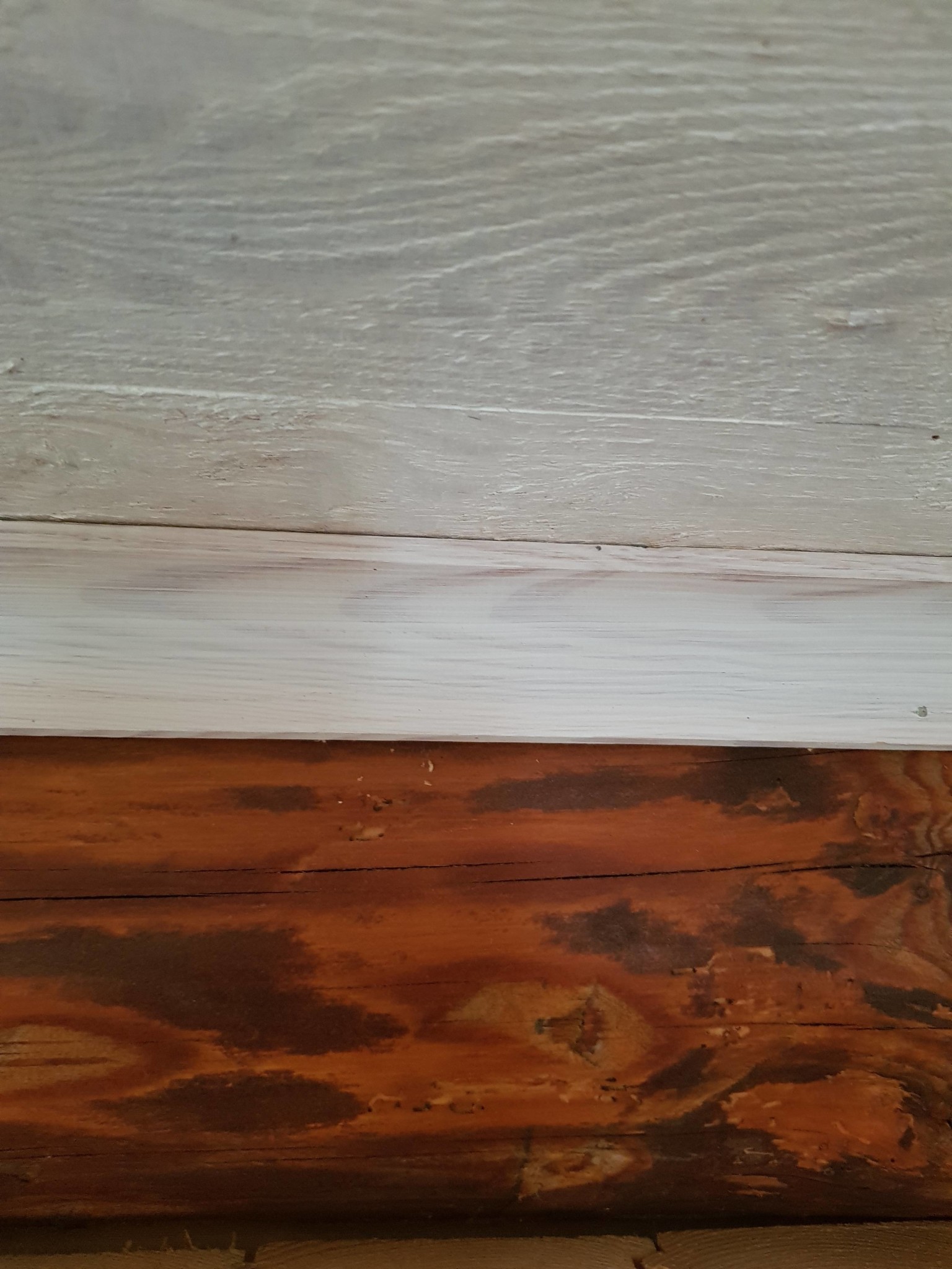Finns det även ngt knep för att bättra på timmer? Jag var tvungen att använda tigersåg för att få bort spånplattorna. Så vid ett par ställen gick den in i timret lite. Är det ngt som jag kan dölja?