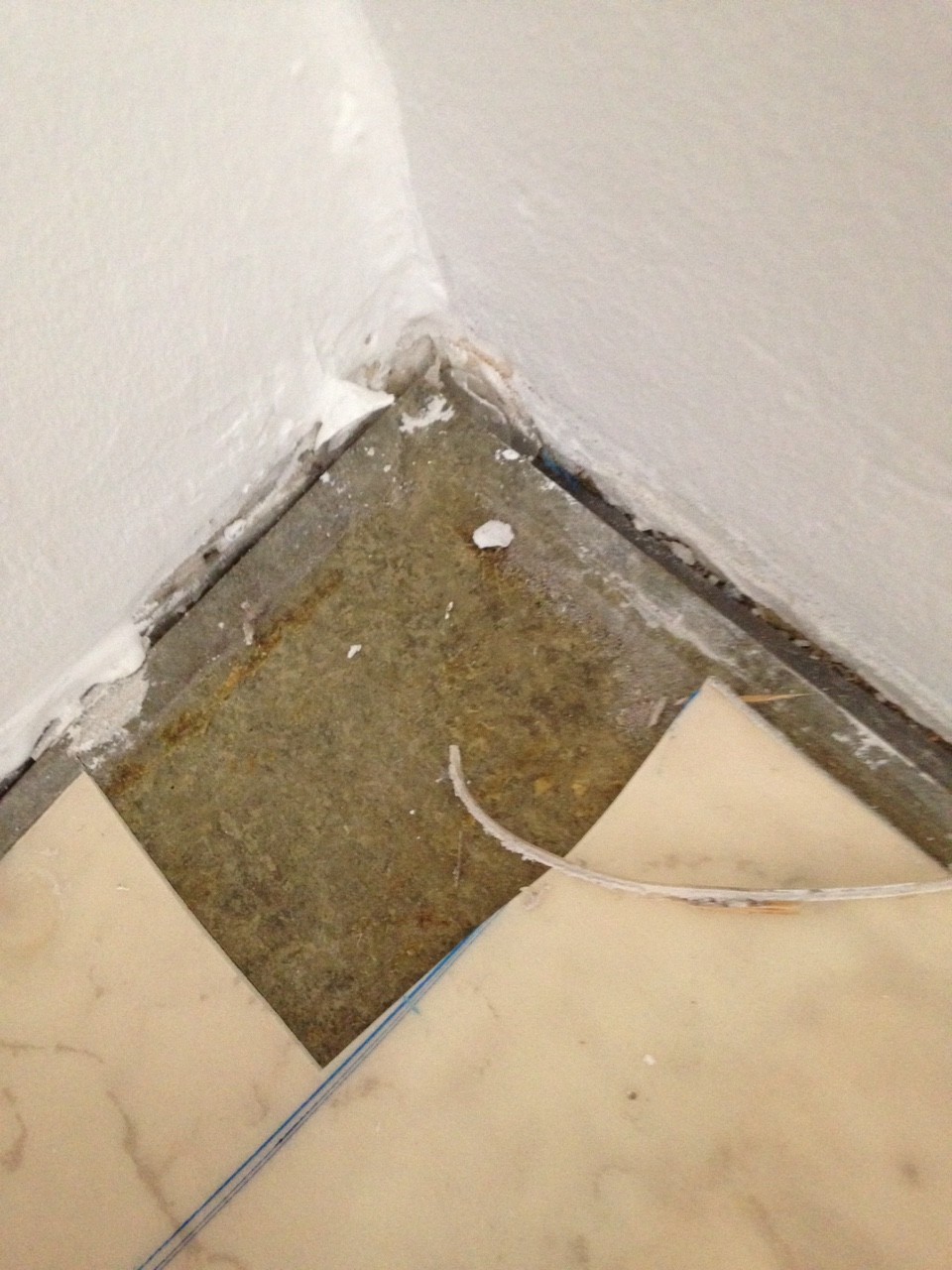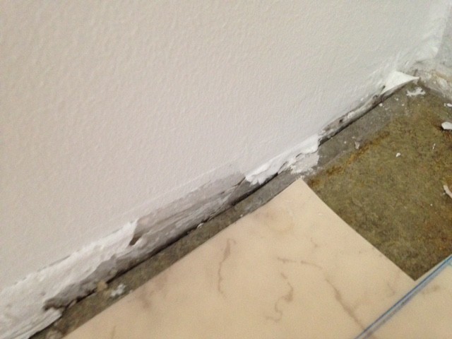 Har ännu inte tagit in någon professionell hantverkare, utan fortsatt att undersöka själv. Har tagit bort plastmattan, och frilagt spånskivorna. Under spånskivorna ligger sanden, och jag har varit i kontakt med bostadsföreningen som varnat för att ta bort sanden, då det går vattenrör genom den.