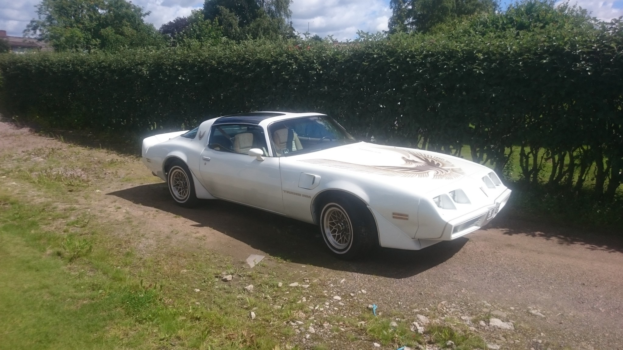 En 77 transam samma som i "nu blåser vi snuten" fast fel färg och fälgar