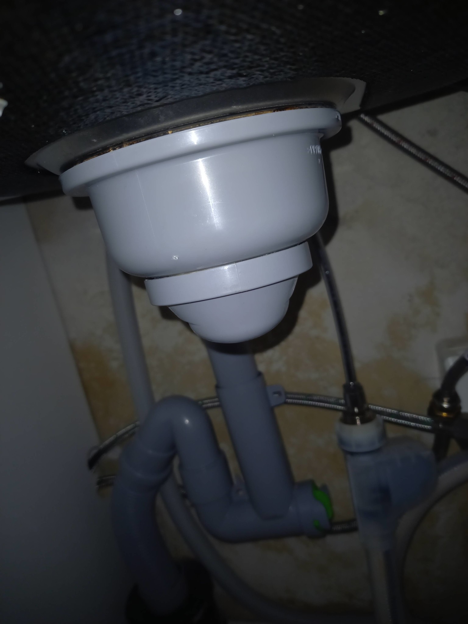 Ett avloppsrör är ju inte så väldigt tekniskt avancerat. Den grå grejen under diskhon sitter ihop med det blanka som du ser upptill, de är s a s skruvade ihop och mellan sitter en eller ett par packningar, för att det ska bli tätt så att vattnet tar rätt väg och inte läcker ut.