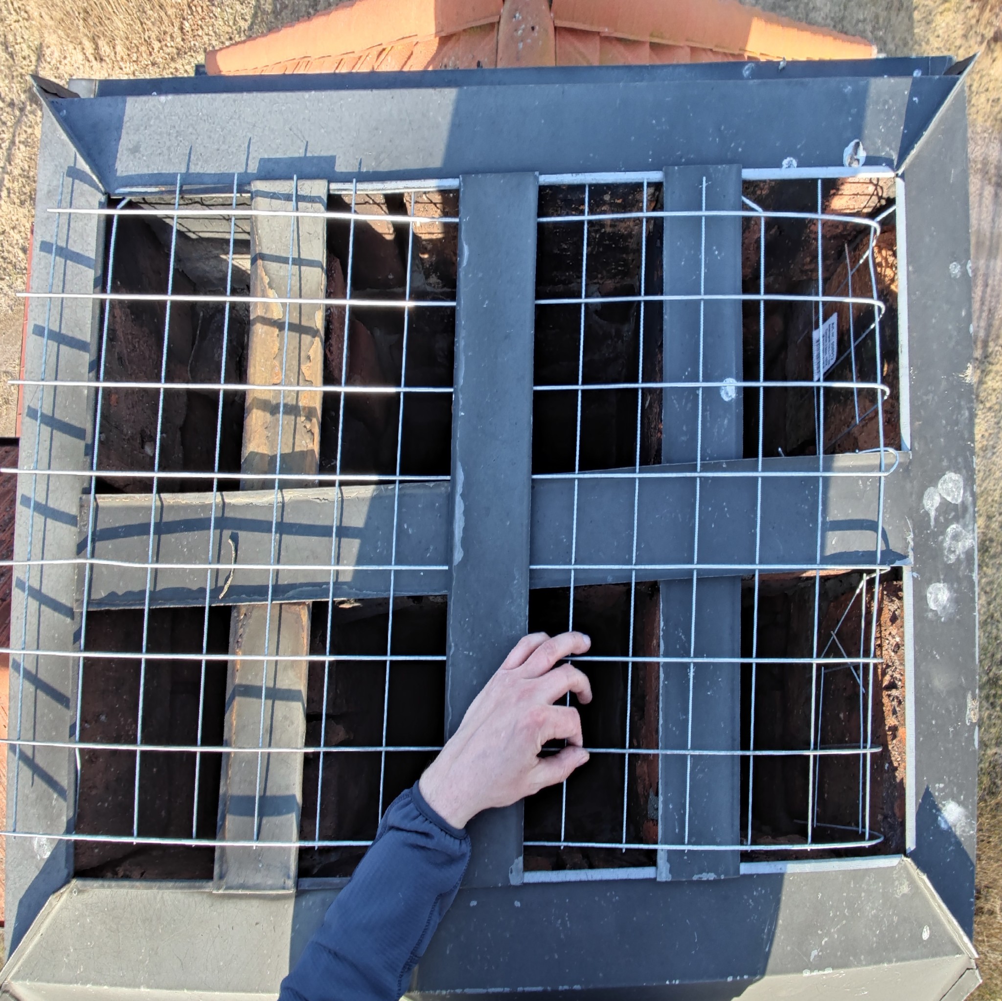 Jag har kört med putsnät på skorstenen i många år och det verkar fungera. Då är maskorna så små att de inte ens försöker pilla ner pinnar. Men trådarna är grövre än i hönsnät, så de rår de inte på.