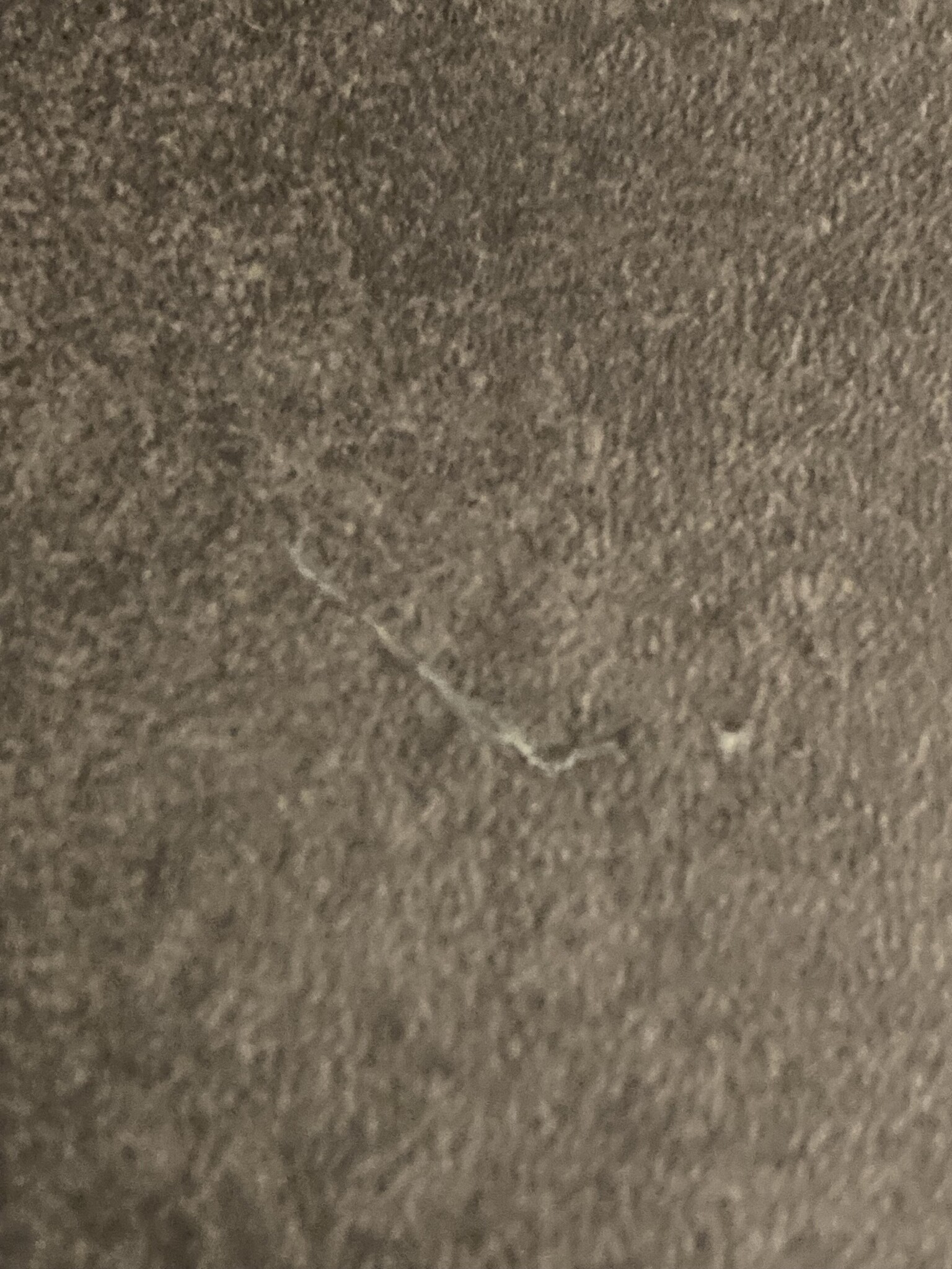 Vid duschutrymmet upptäcker jag nu en ytlig repa i plastmattan. Någon måste ha repat mattan med något.