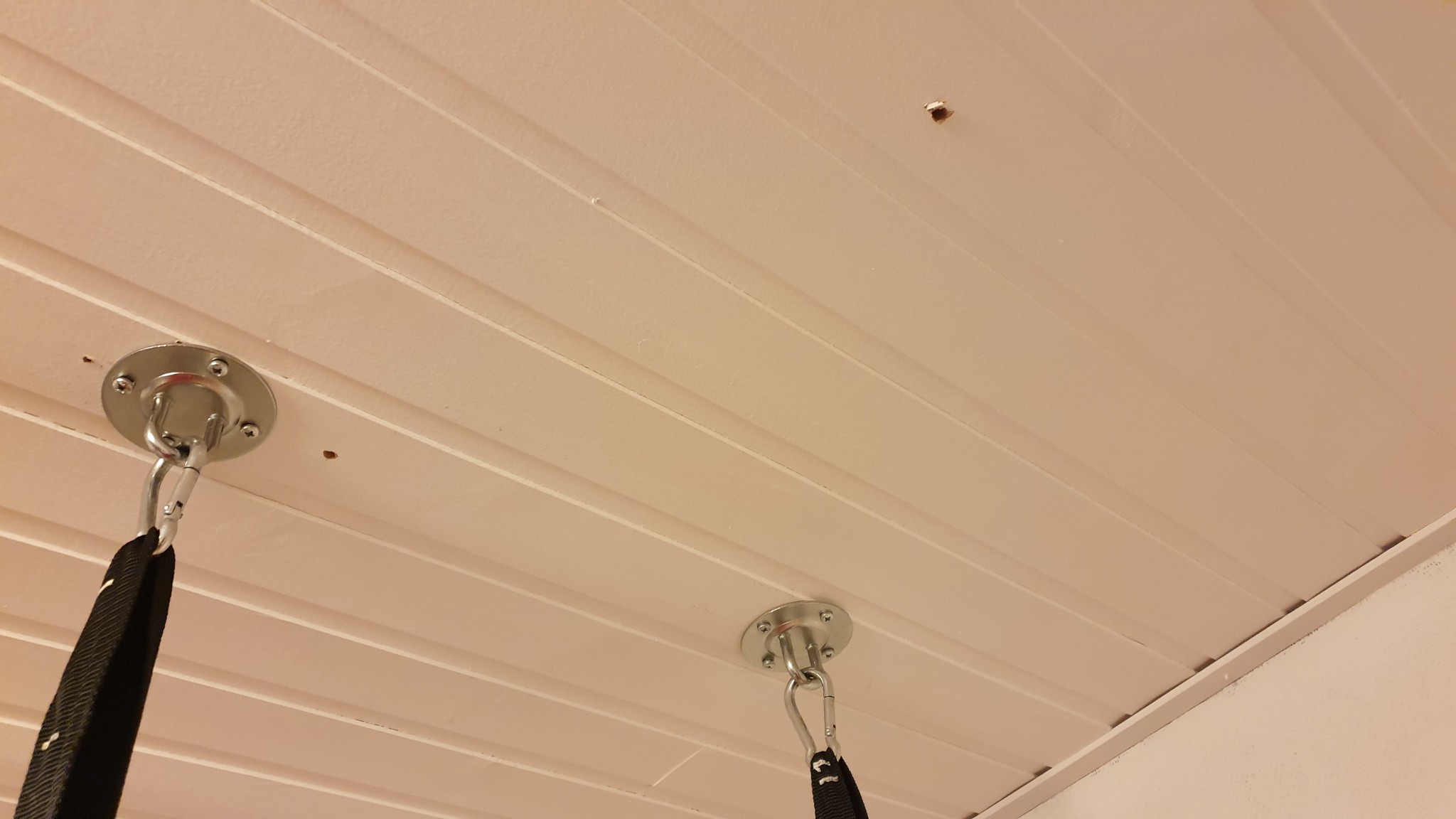 Den vänstra ringen på bilden sitter i en bärande balk. Den högra ringen sitter i en tjock regel som jag säkrat ovanifrån.