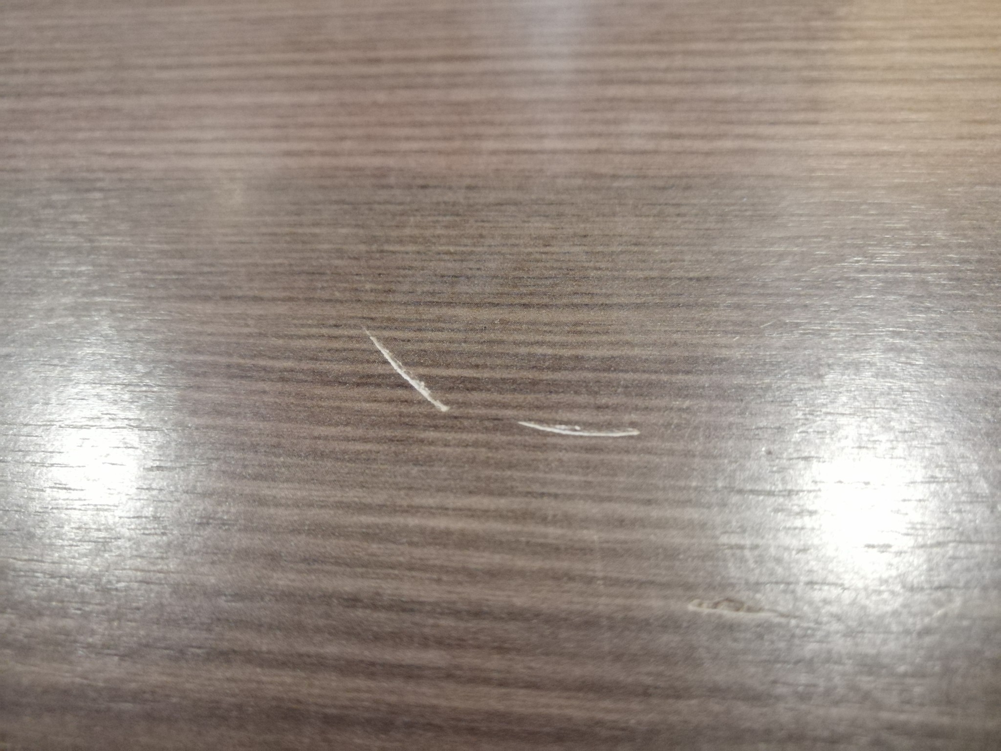 Jag har personligen ingen erfarenhet av att laga laminat men det kanske andra här har? Jag skulle kunna tänka mig att försöka få rätt färg i botten på repan och sen fylla upp med någon form av exempelvis klar epoxi.