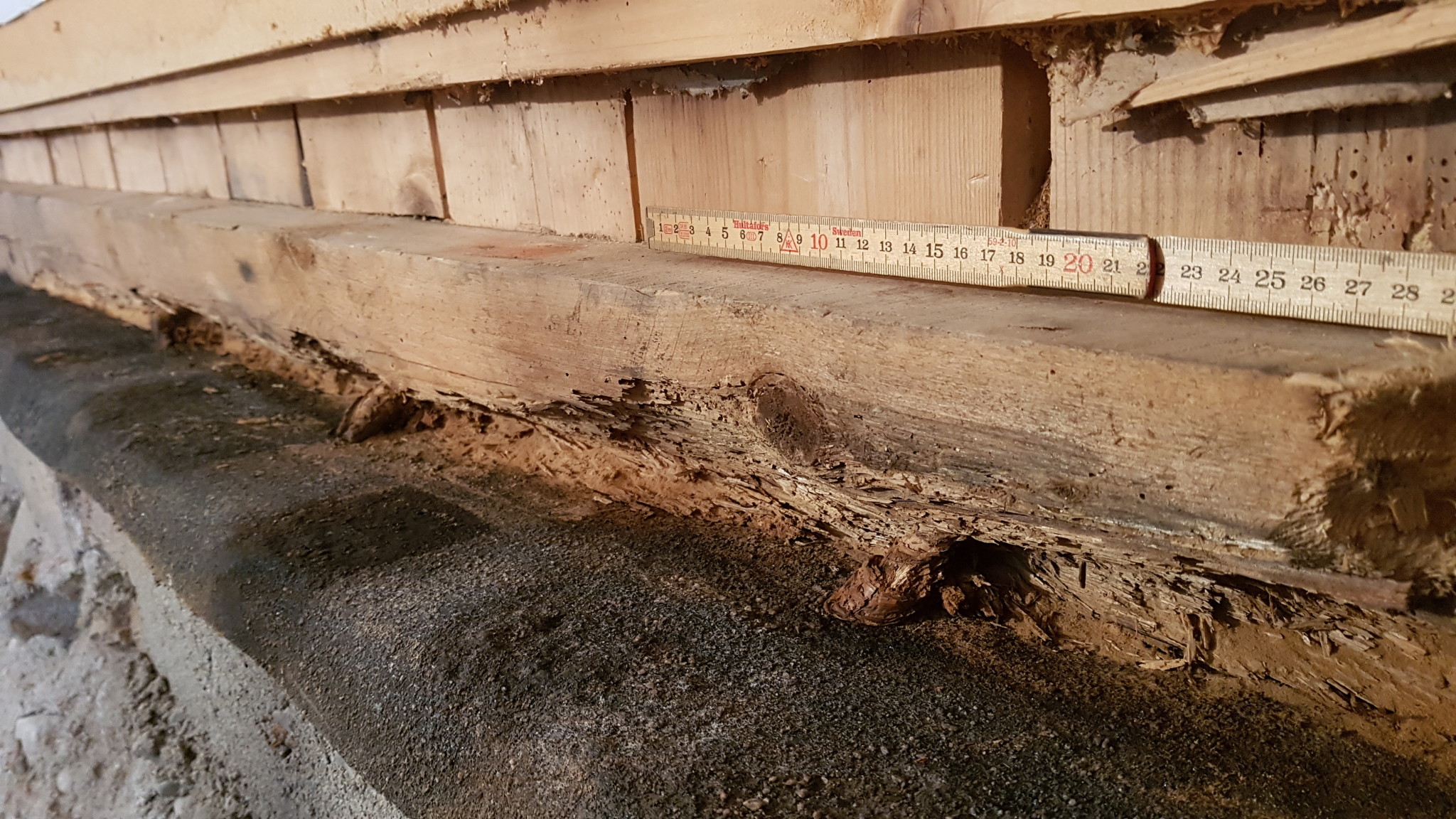 Ser ut som att det finns friskt virke under de stående planken, och att det som är dåligt ligger utanför?