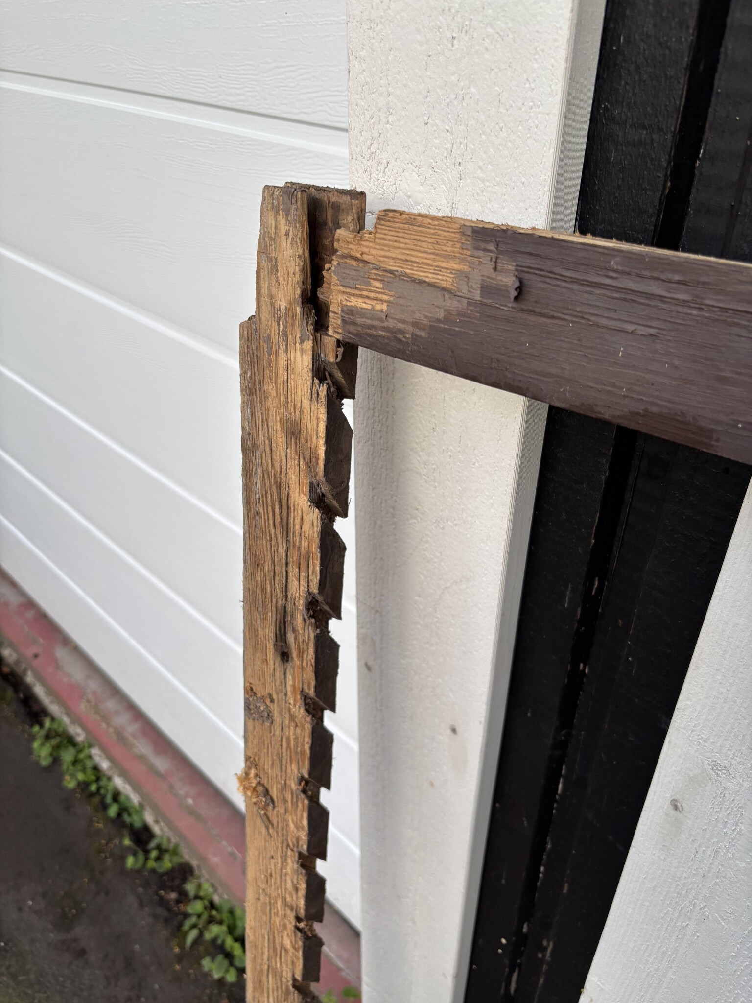 Ett alternativ är att du fräschar upp framsidan så gott det går med spackel eller något och sedan skruvar nya brädar på baksidan av ramen som du målar i samma färg. Då har luckan en bra grund och risken att den faller isär minskar.