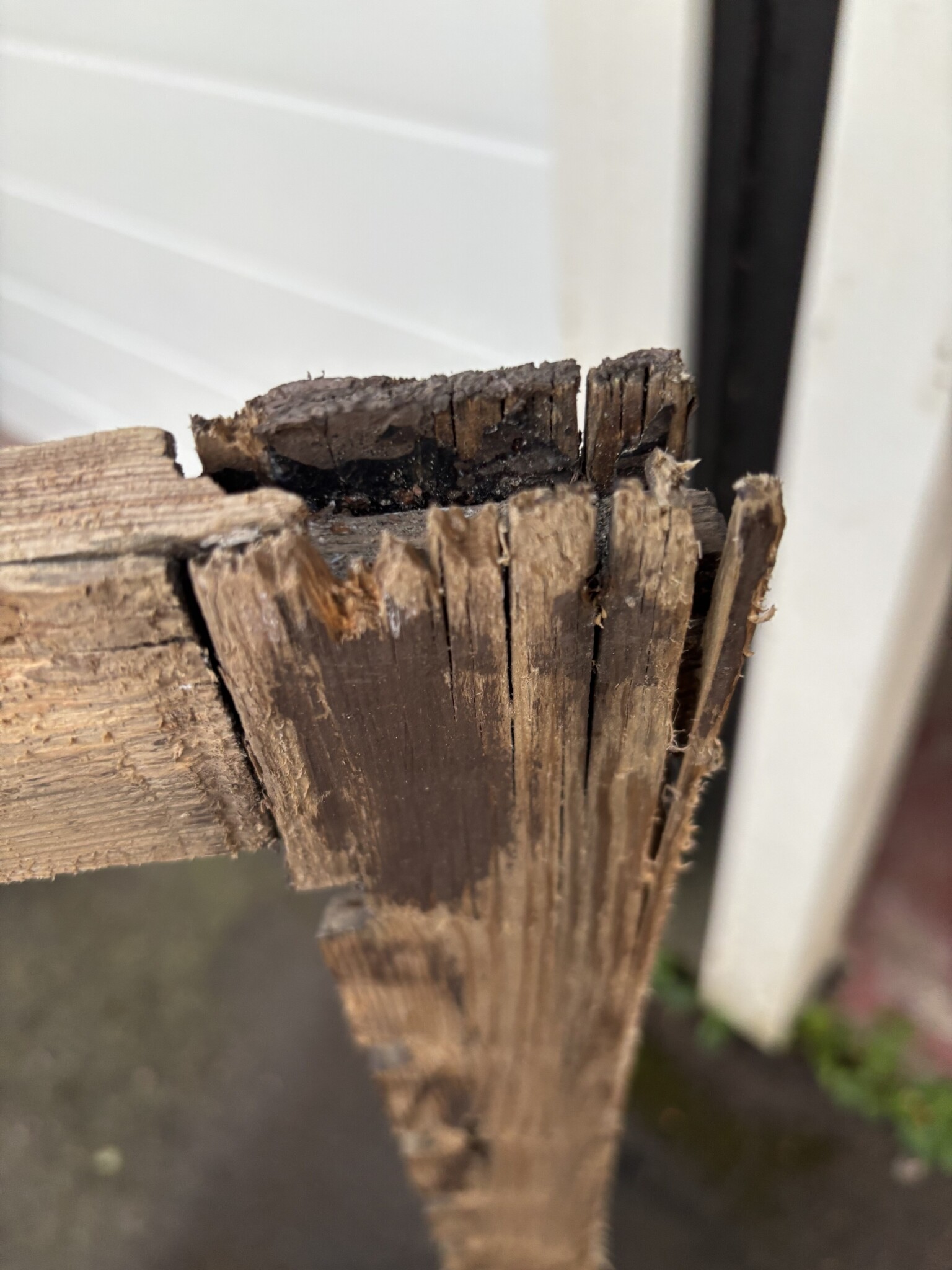 Med glasfiberspackel så kan du säkert få till det så att det är snyggt ut på håll. Men jag anar att det bara dröjer något år så har träet ruttnar mer och allting kommer falla isär.