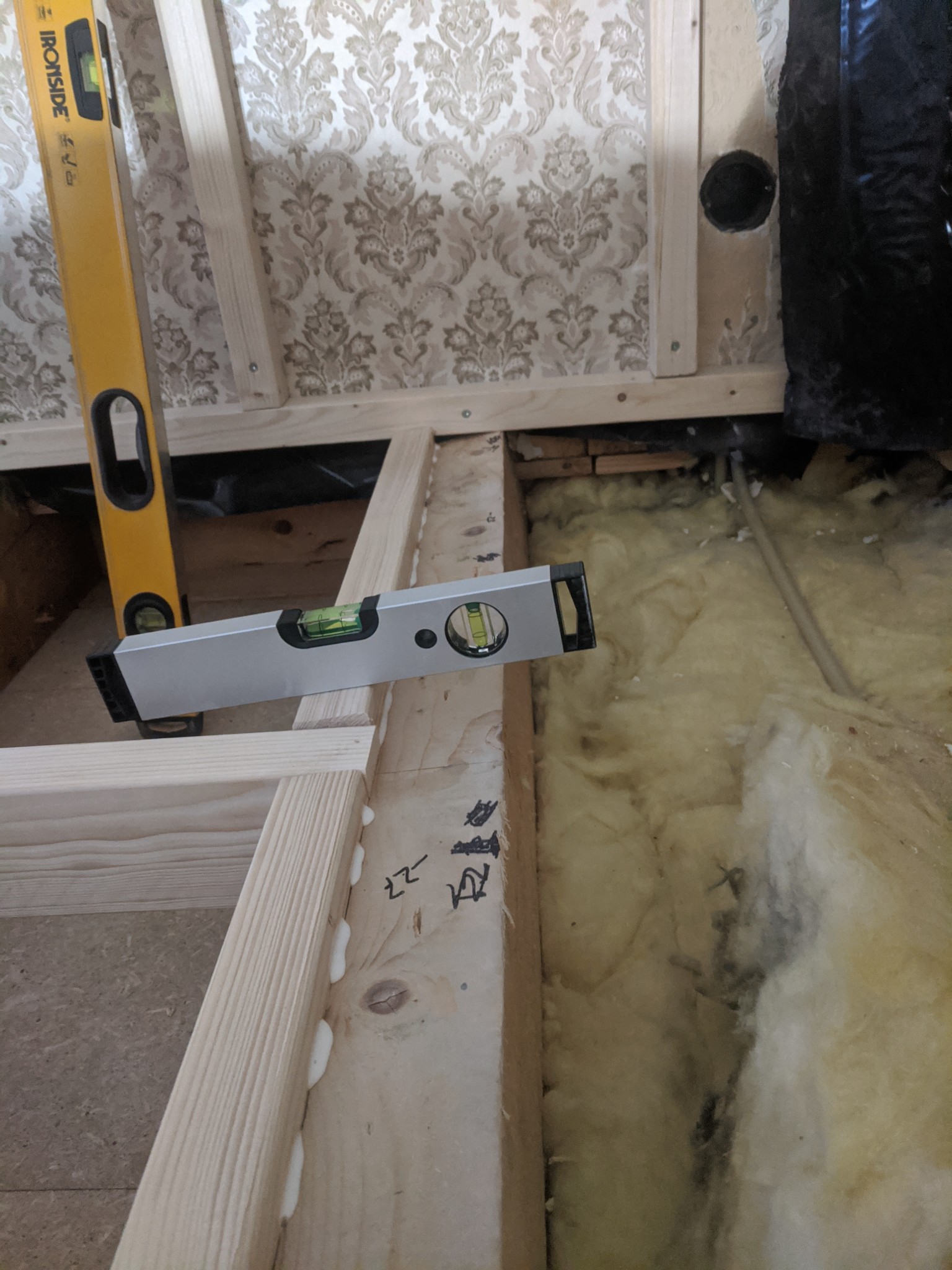 Efter att ha spenderat ett antal timmar här på forumet för att se andras lösningar bestämde jag mig för att skruvlimma 45x70på sidan av de befintliga bjälkarna. Nu till problemet som syns på bilden nedan.