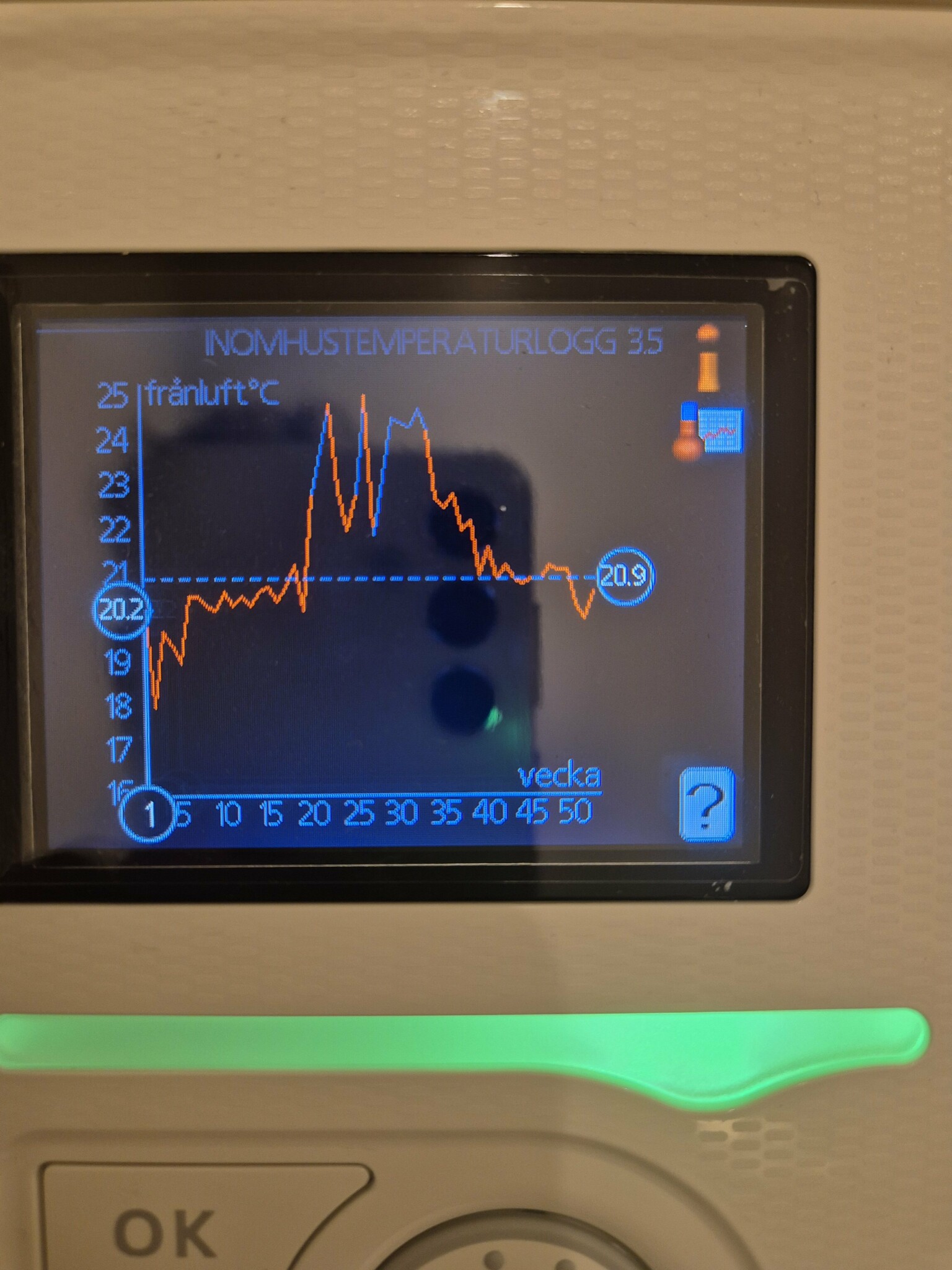 Ett scenario som är tråkigt är ju om elpatron går in för aggressivt, utetemperaturen blir någon grad varmare och vips är Niben nöjd och inte behöver mer värme för stunden. Då stängs kompressorn av och du skickar plötsligt ut 21 gradig luft rakt genom pumpen helt utan återvinning ett par timmar efter nyss kört med elpatron.
