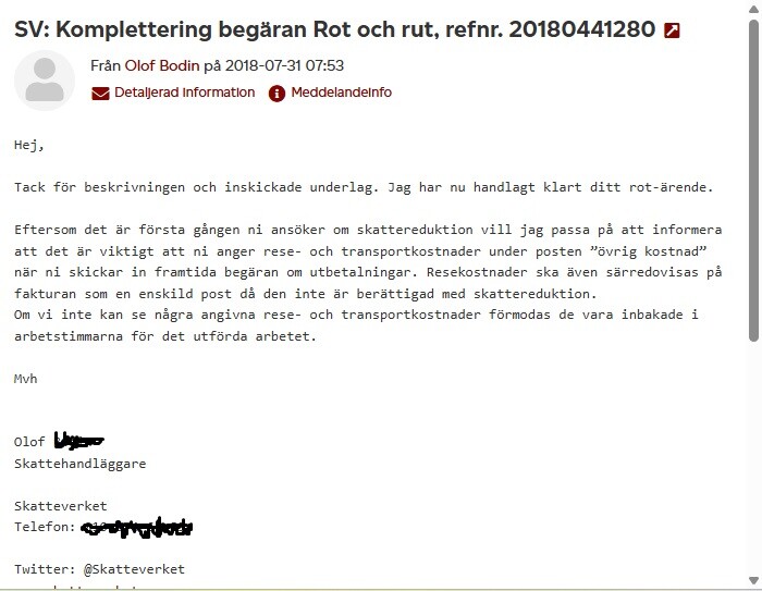 Och en gällande rotadministrationsavgiften, vilket jag inte har någon länk till, men det låter inte orimligt att skatteverket klagar när den är inbakad i arbetskostnaden som är ROT-grundande.
