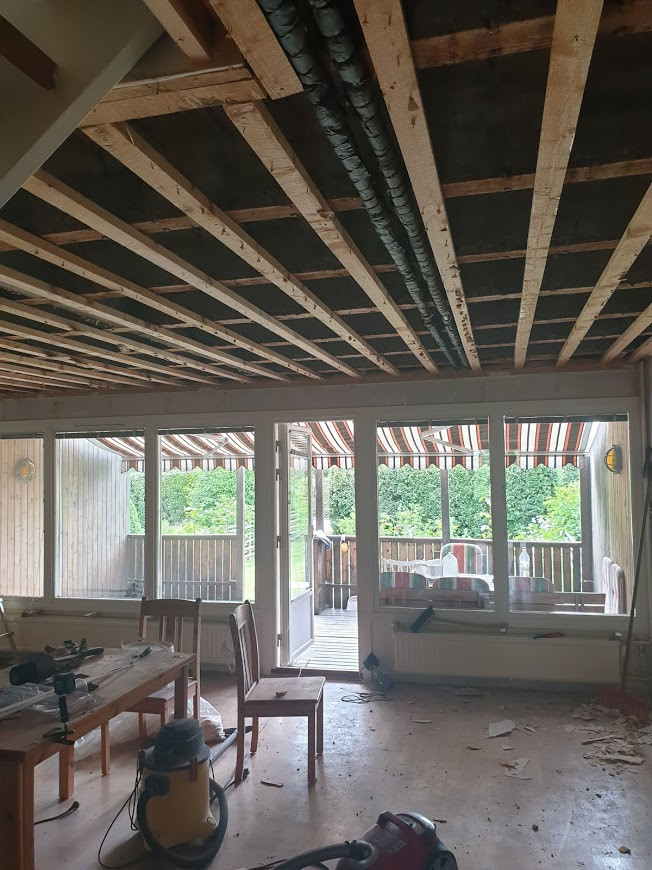 uppsättning av gipset lite i överkant.2 man med hiss bör klara 60 m2 på runt 30 timmar.