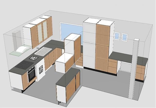 Vet inte vad jag gjorde men inlägget postades innan jag var klar. Tittade nämligen en gång till på ritningen och såg att du har en förskjutning (indragning) i ytterväggen vid entrén. I köket kan man då ställa ett hörnskåp där så harmonierar det bättre med hatthylla/garderob i hallen.