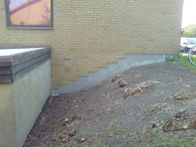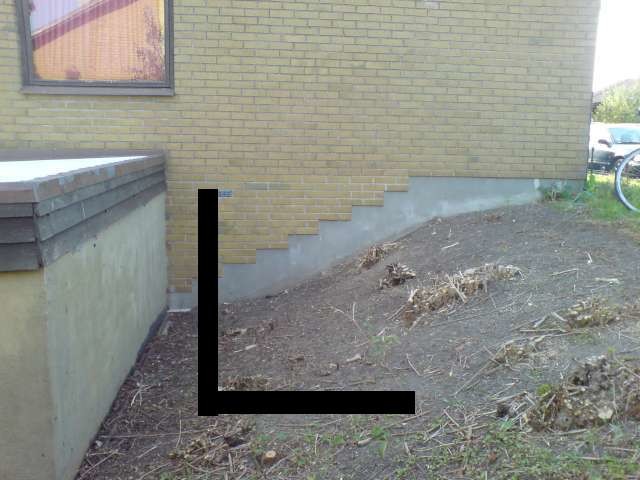Som form byggde jag med råspont ett "plank" med tre liggande 45*95 på utsidan. Samma konstruktion på insidan men då en "hängform" som slutade 15 cm ovan mark (dräneringshål är bra att använda för att sammanfoga formsidorna). Jag fixerade formsidorna med formbeslag som jag hyrde (man kör armeringsjärn genom formen och fixerar med beslagen). Nedre delen av L-et använde jag plywood som skruvades dit under gjutning, varefter jag lassade på sten på dessa.