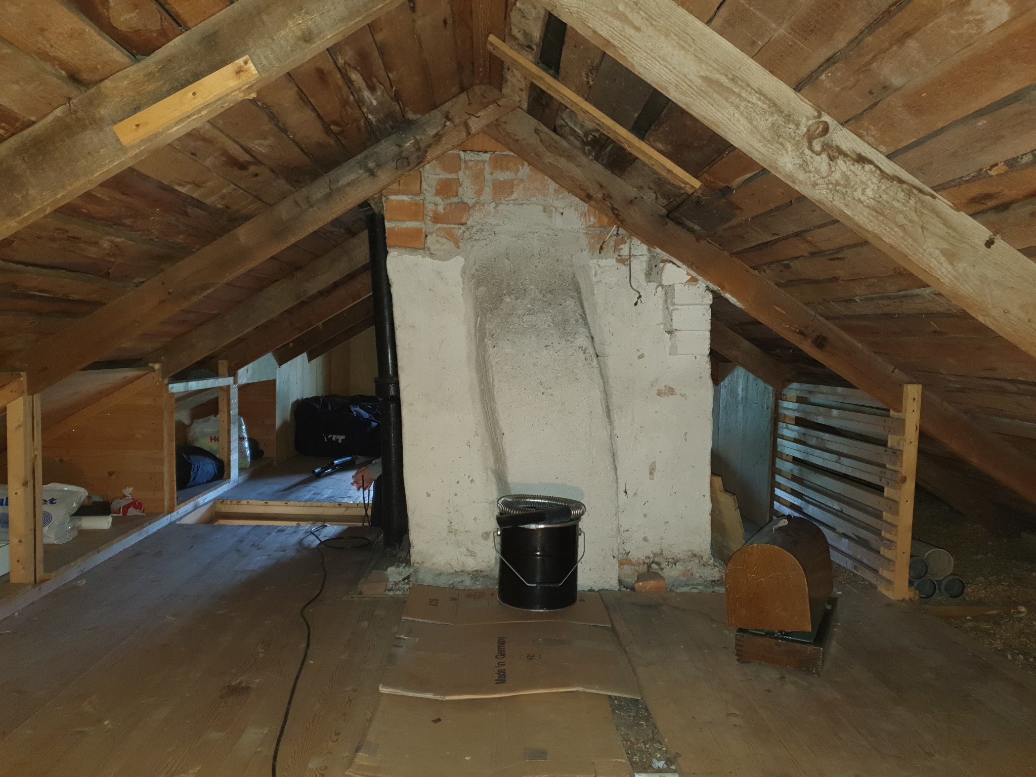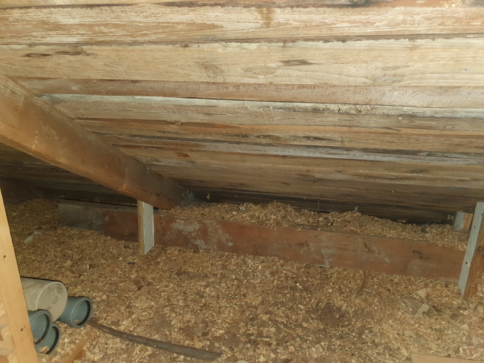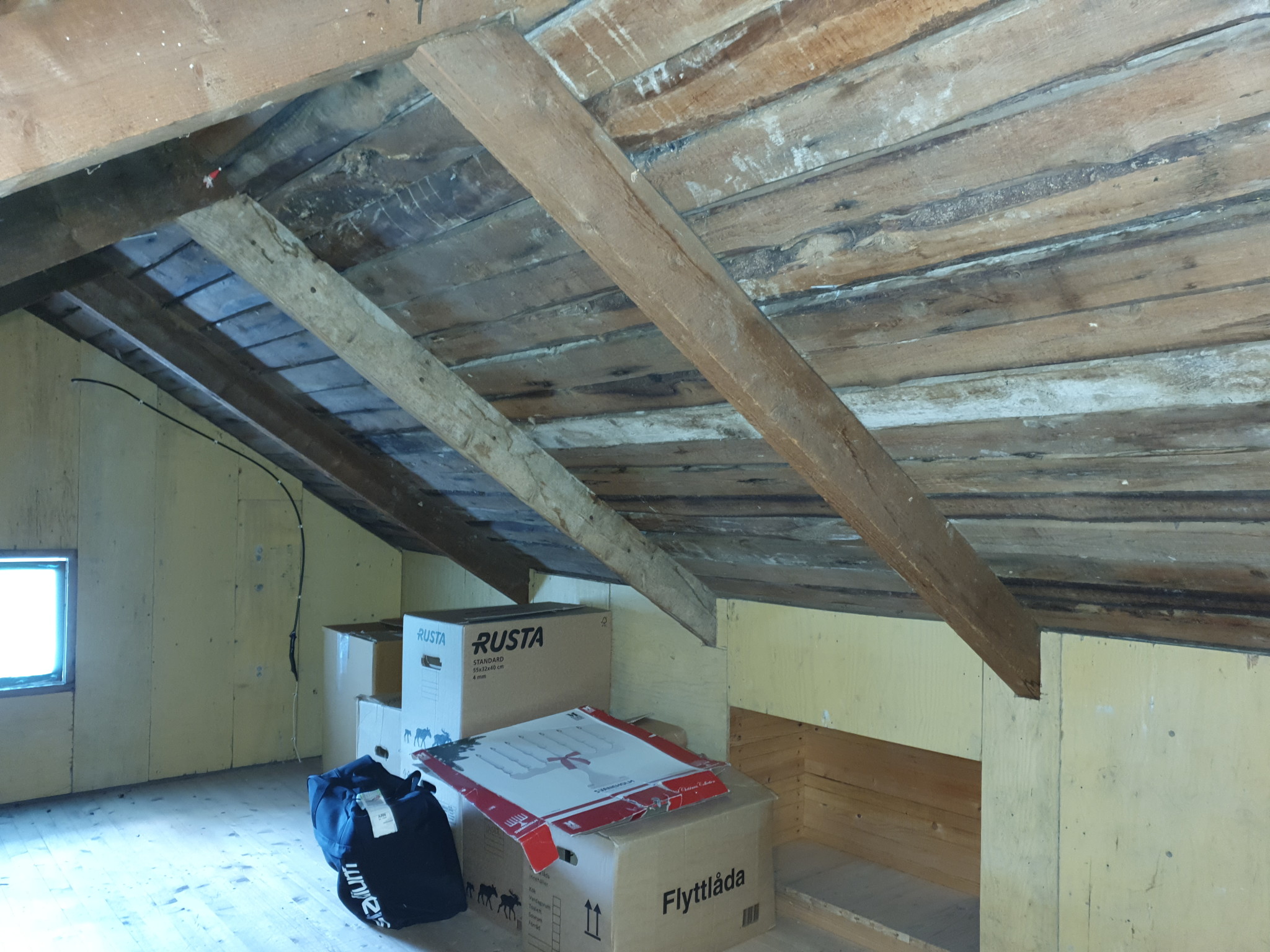 Har fortsatt och forska i huset, på vinden har man byggt någon konstig konstruktion i takstolarna på den sidan av huset där kattvinden är helt borttagen. Dvs här enl. planlösningen: