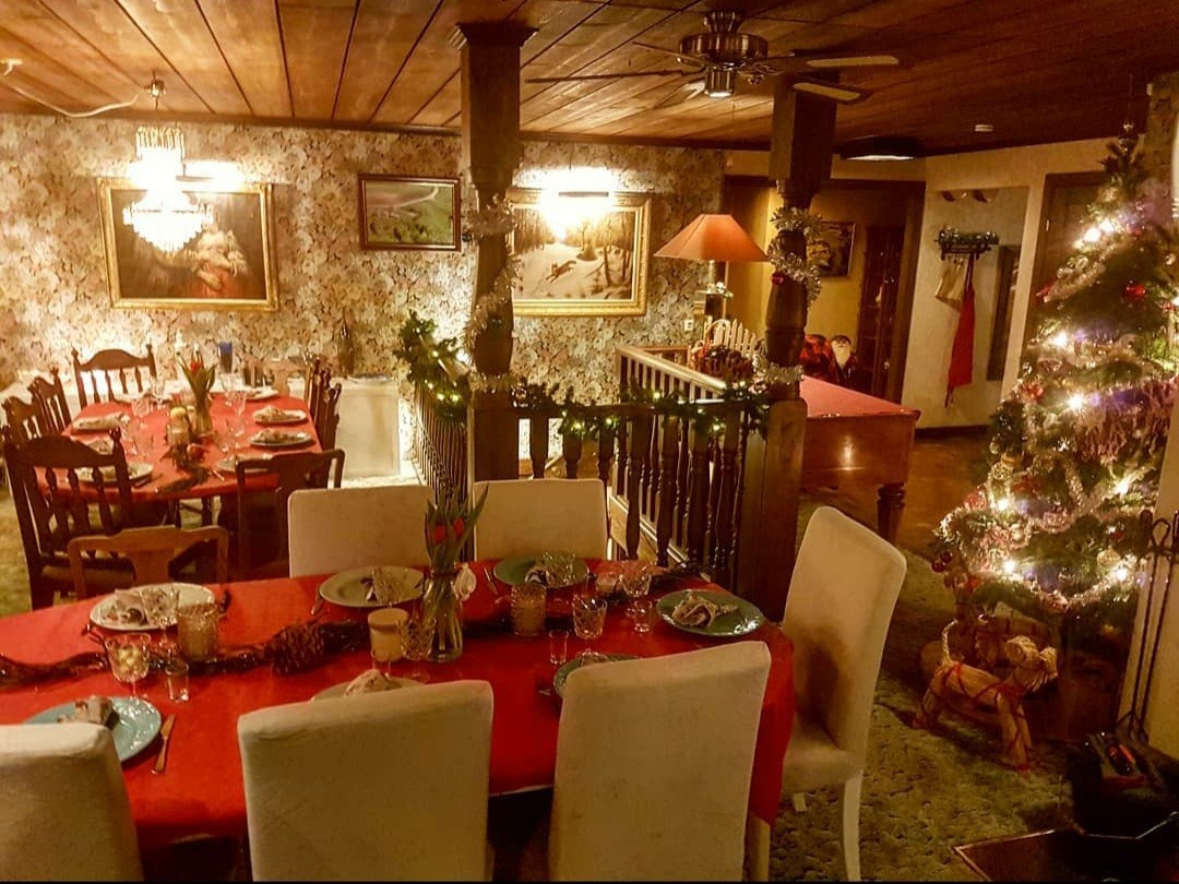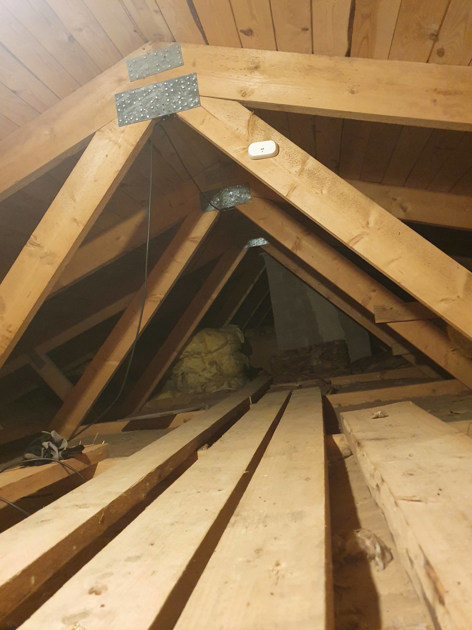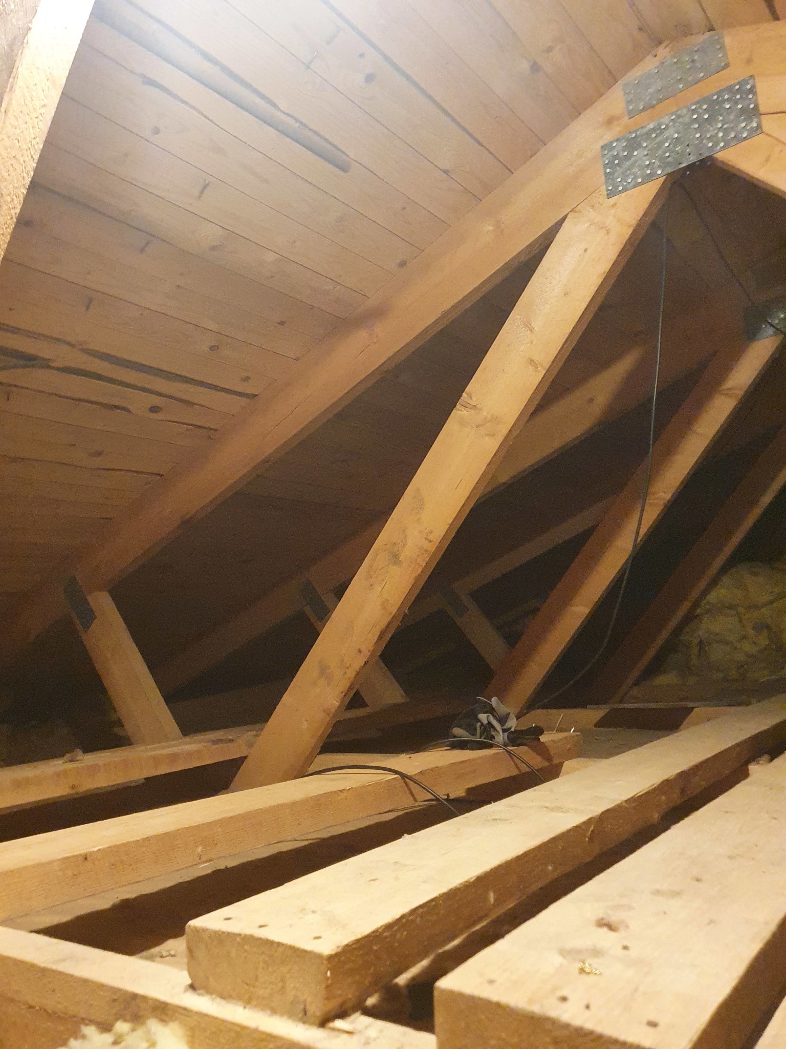 Det är idag avväxlat med pelare där takstolarna byter riktning, bifogar en bild från frugans Instagram. (Detta var 2 år sedan, nästan alla ytskikt är nya i matsal/vardagsrum.)