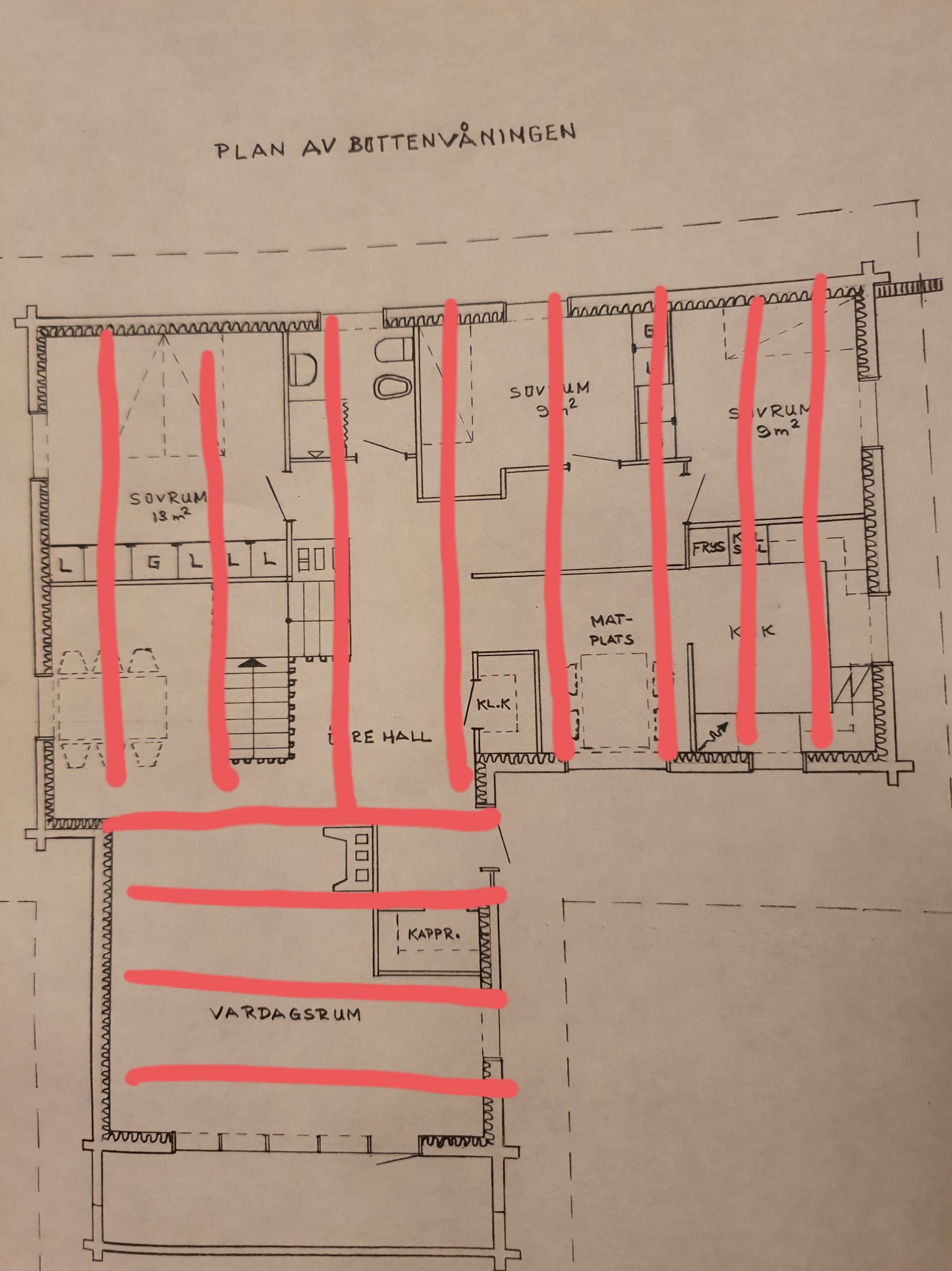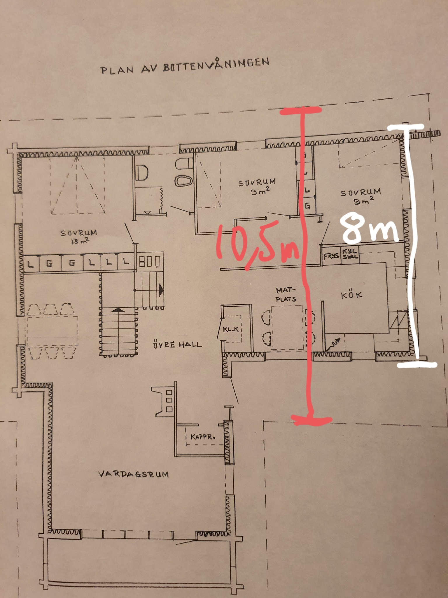 Okok, jo det är precis min känsla också.L Leafy skrev:Jag skulle rent spontant anta att den enda avväxlingen du har i huset ligger där takstolarna byter riktning och att du skulle kunna plocka bort alla väggar invändigt för att få en jätteöppen planlösning. Jag har nämligen samma typ av fackverkstakstolar i mitt hus och jag fick göra en avväxling när jag tog bort en vägg där du redan idag har öppet som ritning visar. Jag har därefter rivit ett par väggar invändigt och byggt upp nya för att få en planlösning som passar oss.