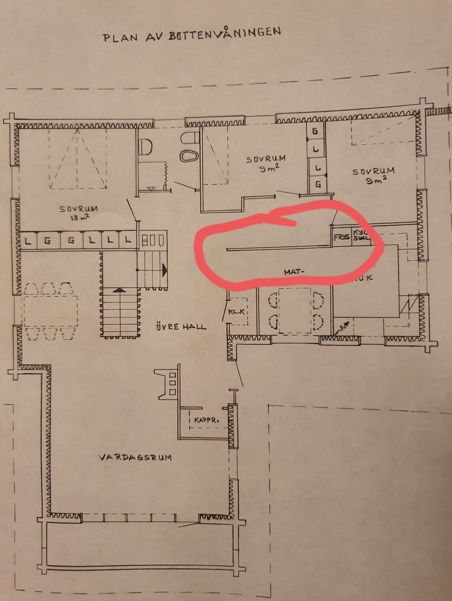 L Leafy skrev:Det är alltså den inringade väggen på de sista ritningarna du vill riva för att få mer öppet runt kök och matplats?