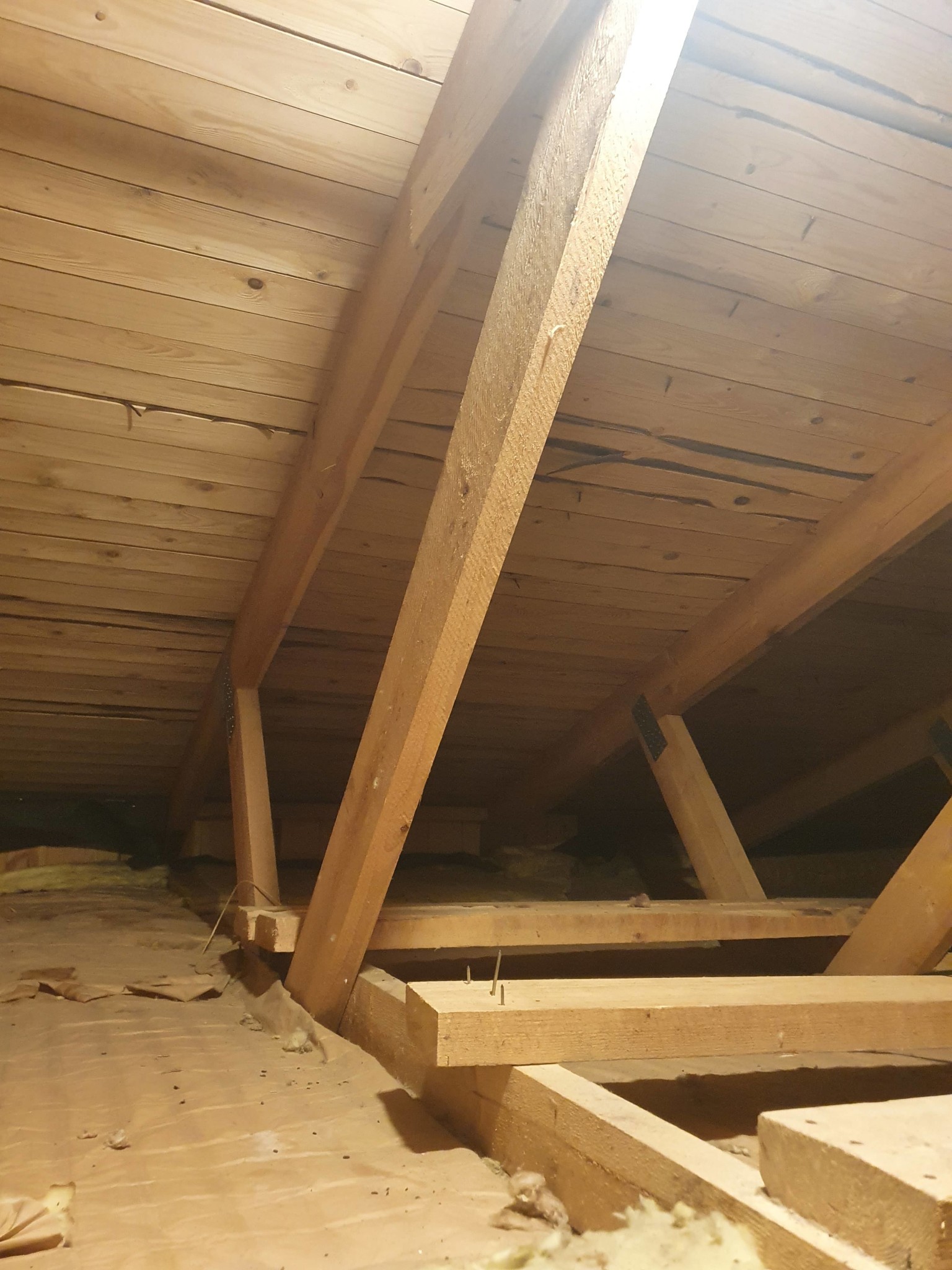 Jag har alltså nyligen köpt ett dödsbo i form av ett timmerhus färdigställt 1983. Huset är timrat i 220mm tjockt timmer plus reglar, spånskivor och isolering innanför med totalt 450mm tjocka väggar (ytterväggar). Huset är byggt helt på egen hand av en herre som tog timmer från egen skog, torkade, barkade, sågade i eget sågverk, handbilade, timrade med hemgjorda byggkranar med diverse anordningar, drevade etc etc.