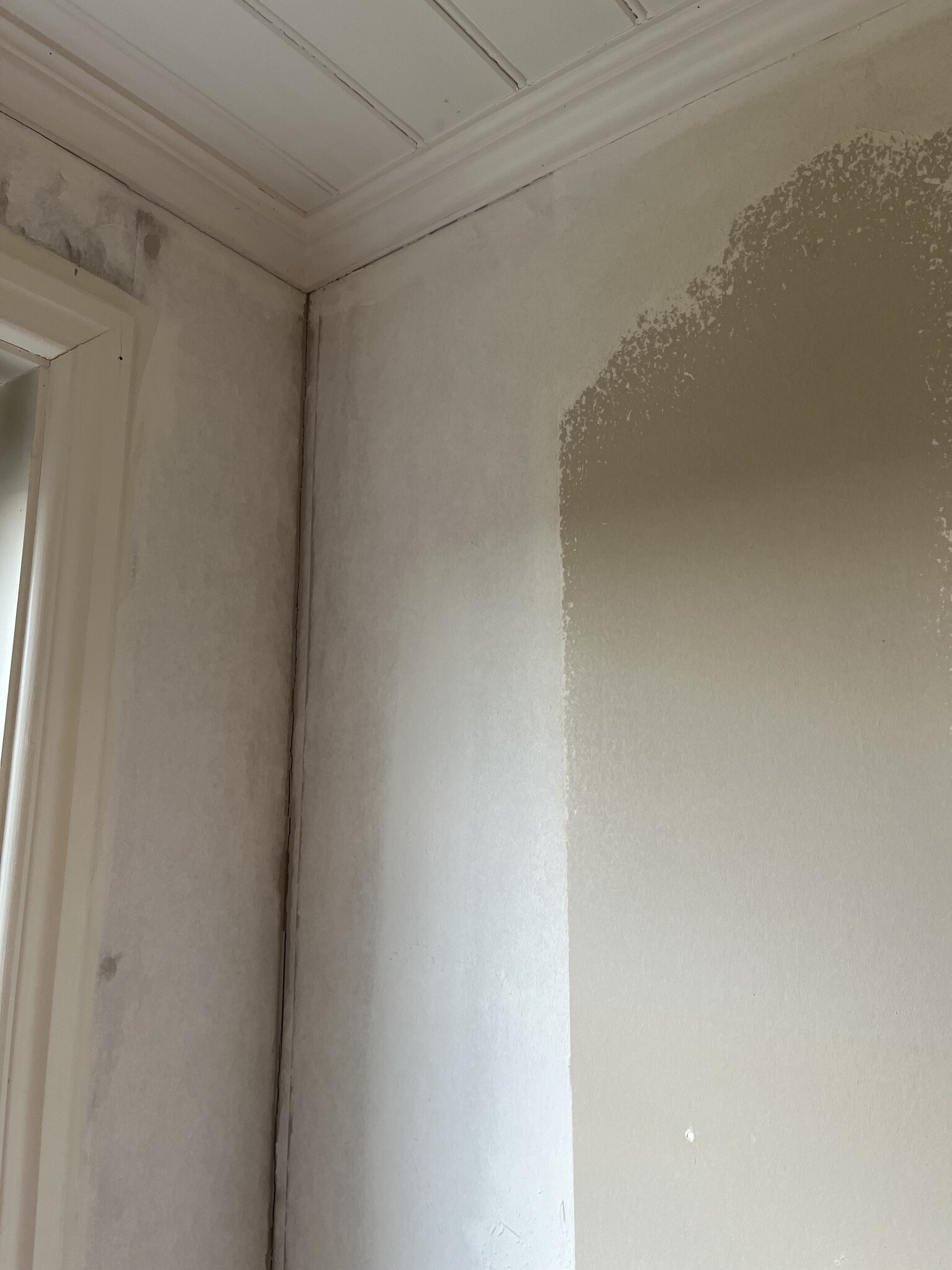 Sedan efter grundningen så spacklar man alla ojämnheter och slipar. Sedan kan man grunda framförallt de spacklade ytorn med billig färg eller lim. Man vill inte sätta tapet på ett alltför sugande underlag, tapeten "nyper" fast på sekunder på en sugande yta, det ger ingen marginal för att jsutera tapeten. Har kan tagit rikligt med lim och sätter på en yta som inte suger för bra, så flyter liksom våden på limmet och man kan skjuta hela våden i sidled så man får perfekt passning.