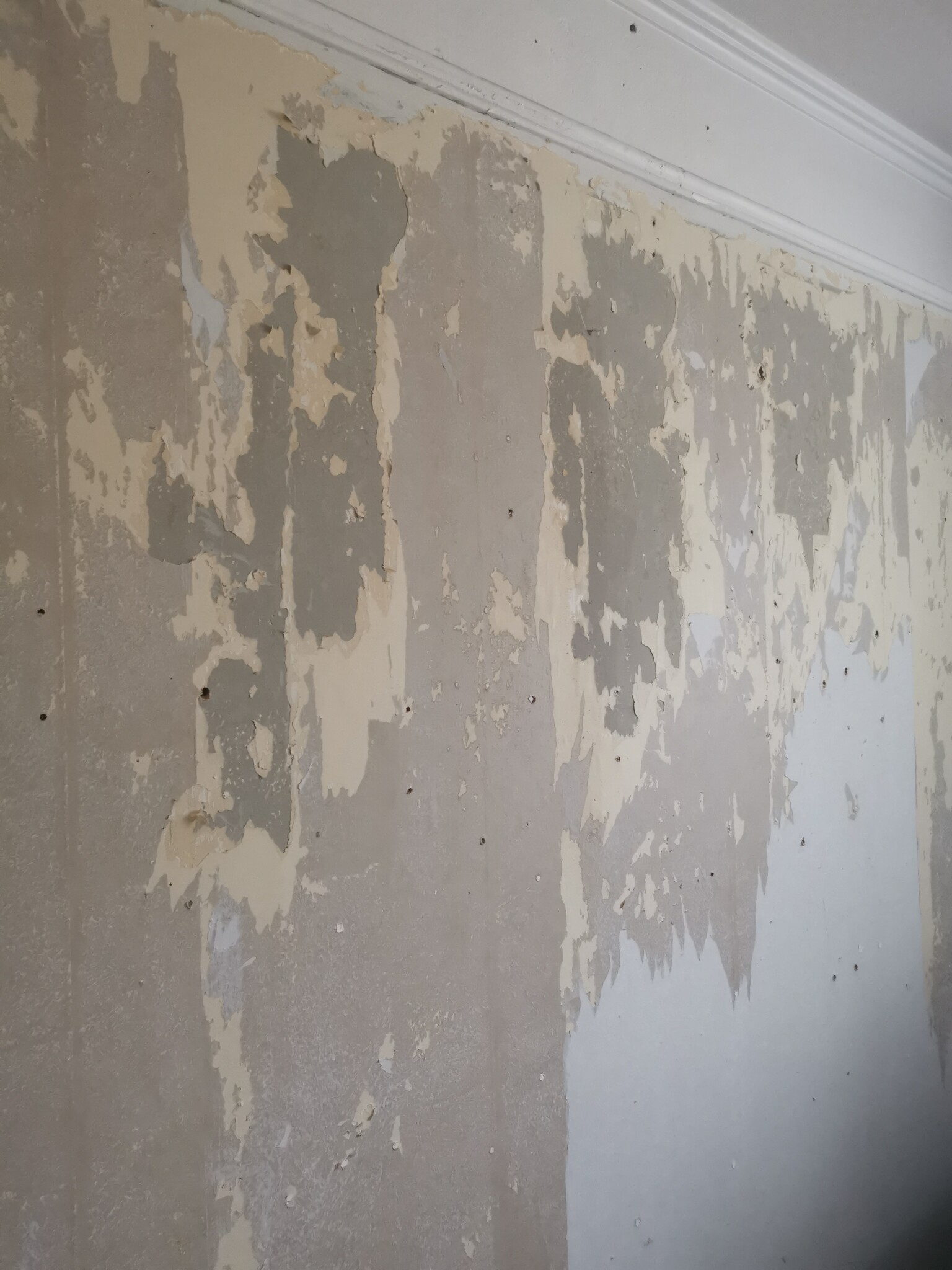 Jag ångade ner tapeten, spacklade och satte tunn armeringsväv.