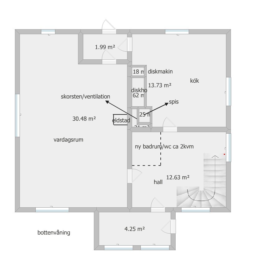 Vore tacksam om du kan hjälpa mig också med liknade situationen. Tänker ta bort väggen mellan vardagsrummet och kök. Det finns idag en öppning i denna vägg mot ytterväggen (dörr). Det är parallellt med takstolar. Tidigare ägare tagit bort (avväxlat) en bärande vägg vid garderoben i vardagsrummet som idag är matsal (röd markerat). Tror du att väggen mellan vardagsrummet och köket är antigen bärande eller uppstuvande? Har bifogat original ritningar (svarta) och dagens planlösning (vita). Stort tack i förhand.J justusandersson skrev: