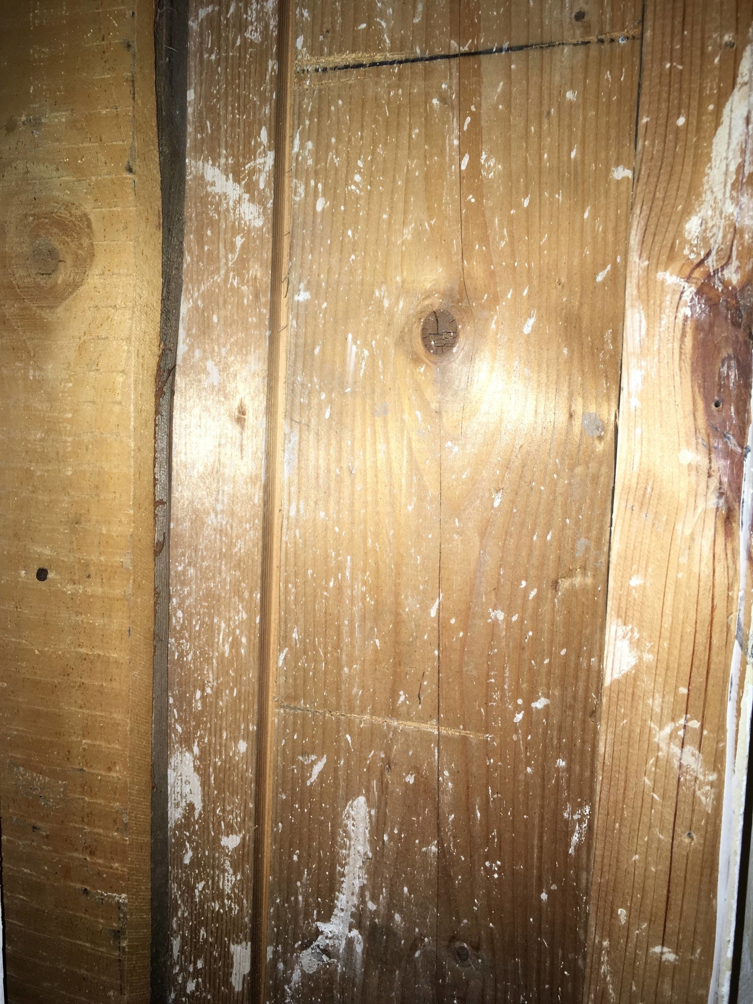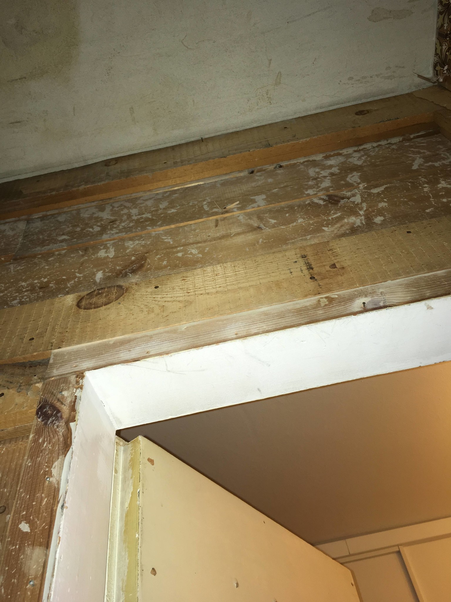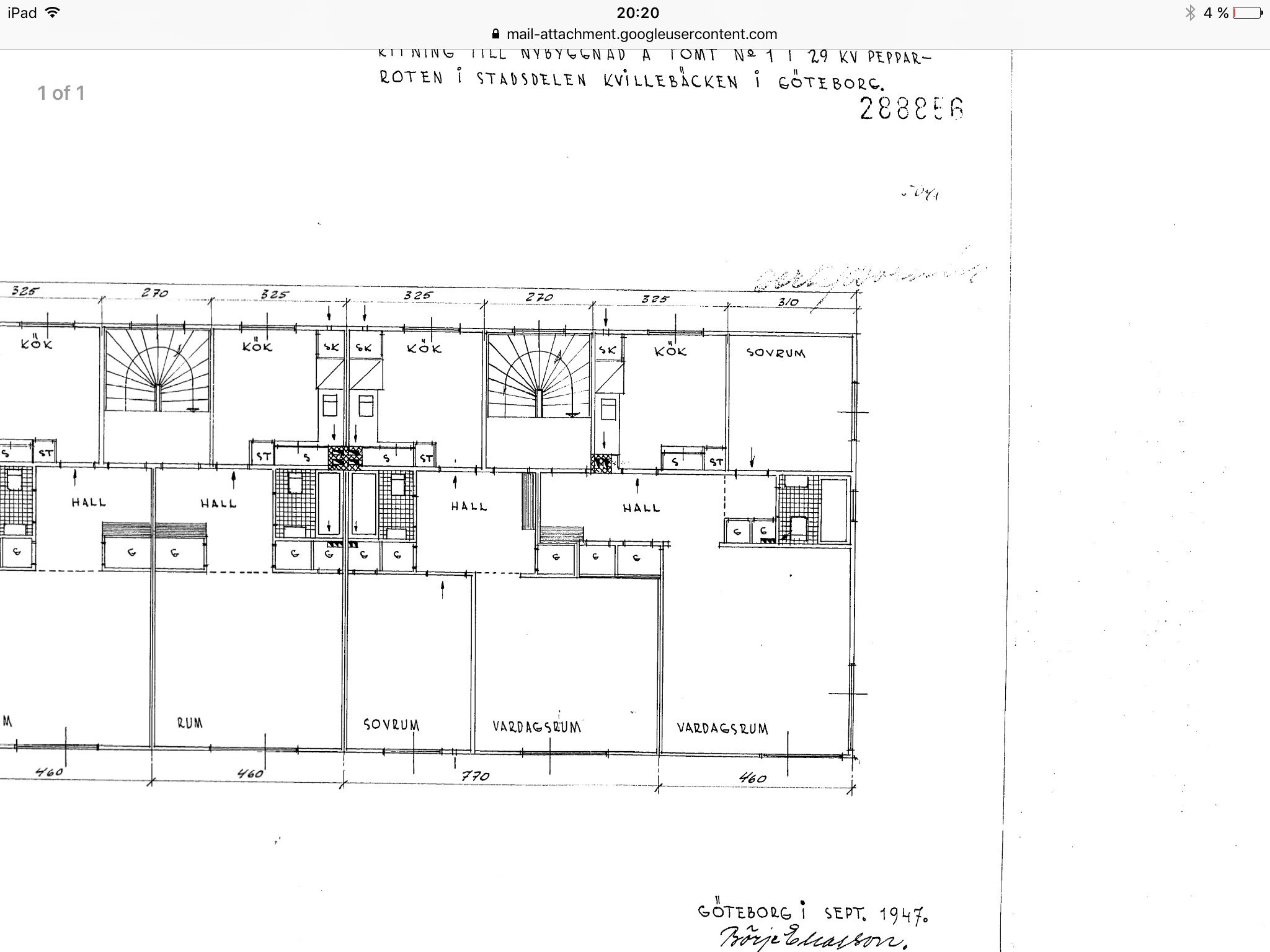 Vi bor på nedersta plan i ett bostadsrättshus om två plan plus vind (och källare). Huset är byggt -48. Väggarna är kloasongväggar med trä, vass och puts.