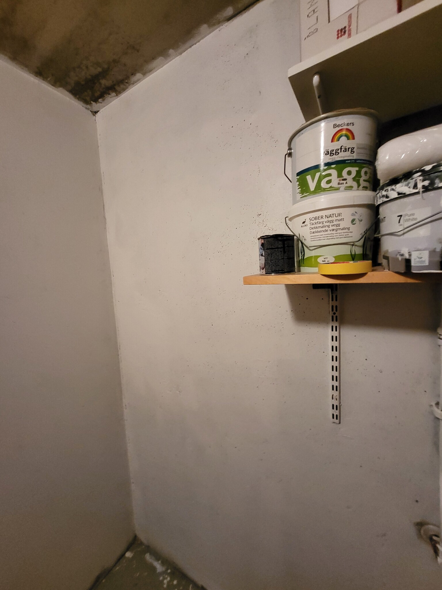 Jag tänkte fräscha upp förrådet och måla cementväggarna vita. Förrådet är inomhus och finns värme där.
