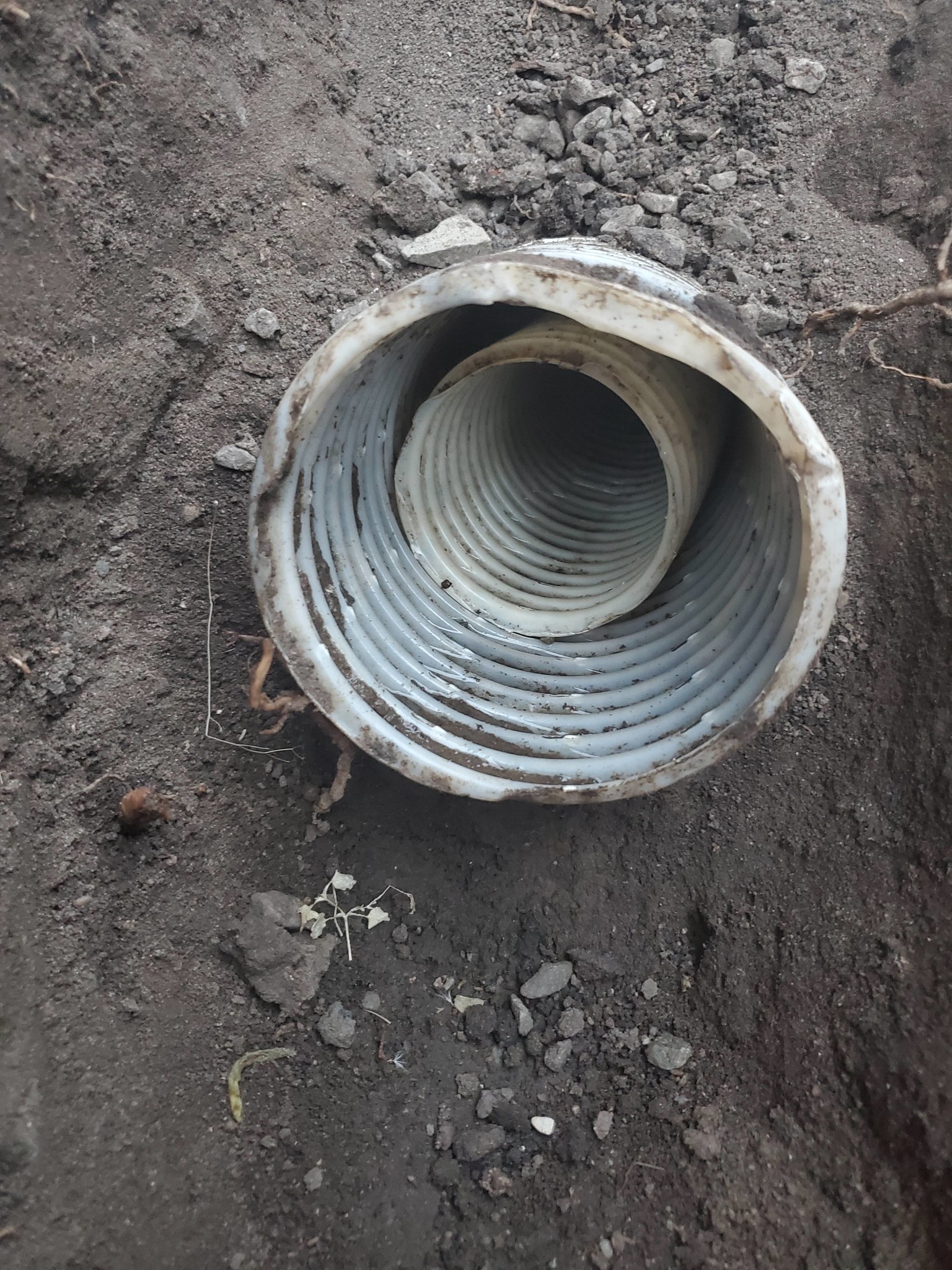 Har tyvärr inte hittat anslutningen av dräneringen till dagvattenavloppet ännu, så ingen aning om hur det ser ut i andra änden.