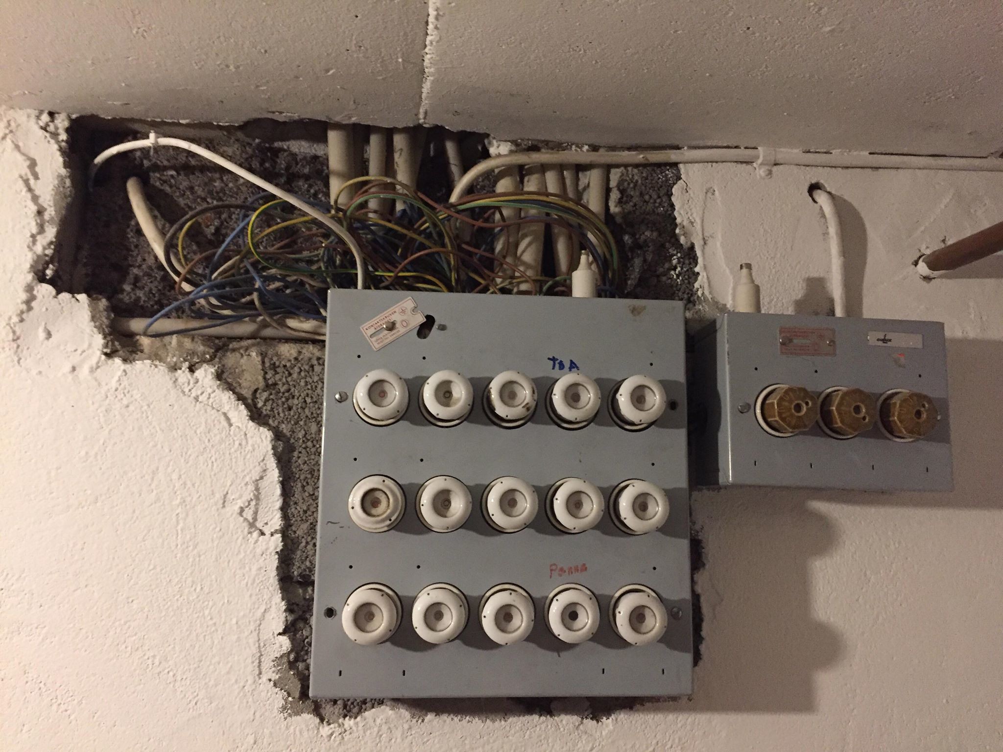 Ser ut som om centralen kom upp innan det var färdigputsat, sen gjordes aldrig jobbet klart.