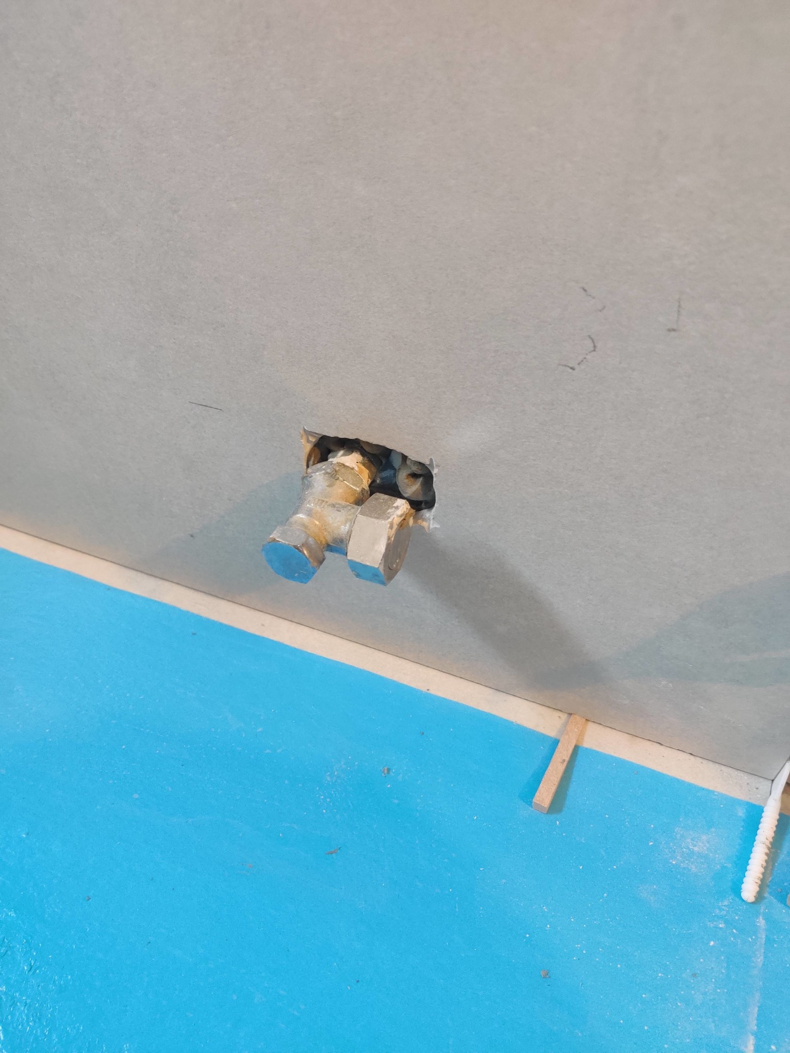 Ytterligare en fråga som dyker upp gäller tätskiktet på vägg där flera luftbubblor kunde ses innan kaklet kom upp. Plattsättaren skar upp några utav dessa för att sen täta. Nu i efterhand läser jag detta i branschreglerna från GVK: