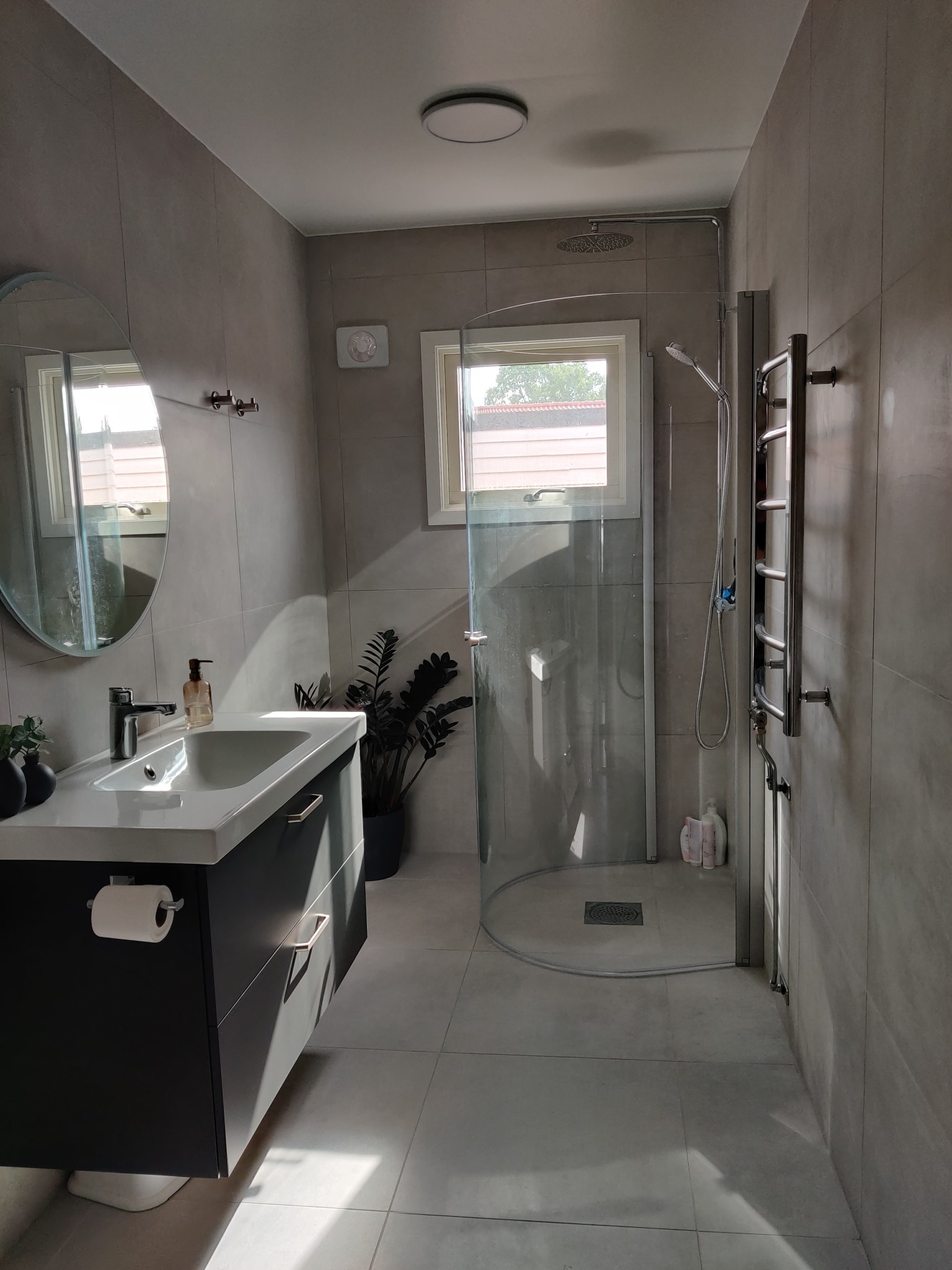 Hejsan, vårt badrum genomgår en fullständig renovering. Just för tillfället är plattsättaren klar men en del frågetecken har dykt upp.