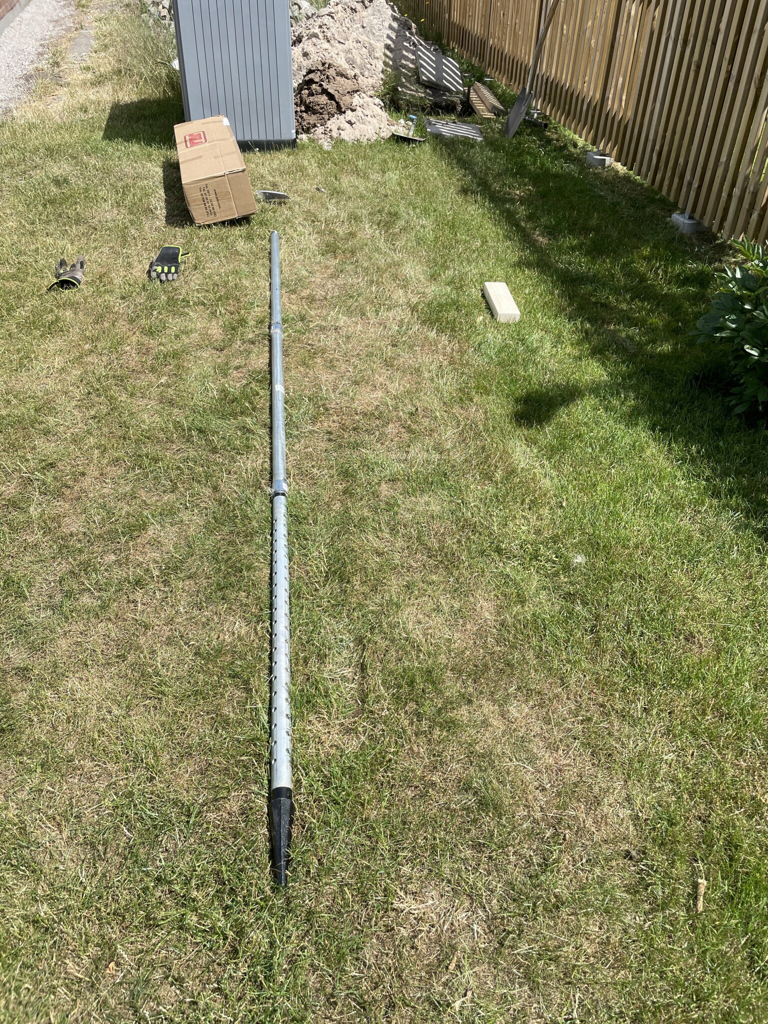 Drog upp röret till 4 meter, märkte direkt när jag kom upp i sanden igen då det gick mycket lättare med domkraften. Provpumpade med slang i röret och fick upp 6-7 liter /minut.