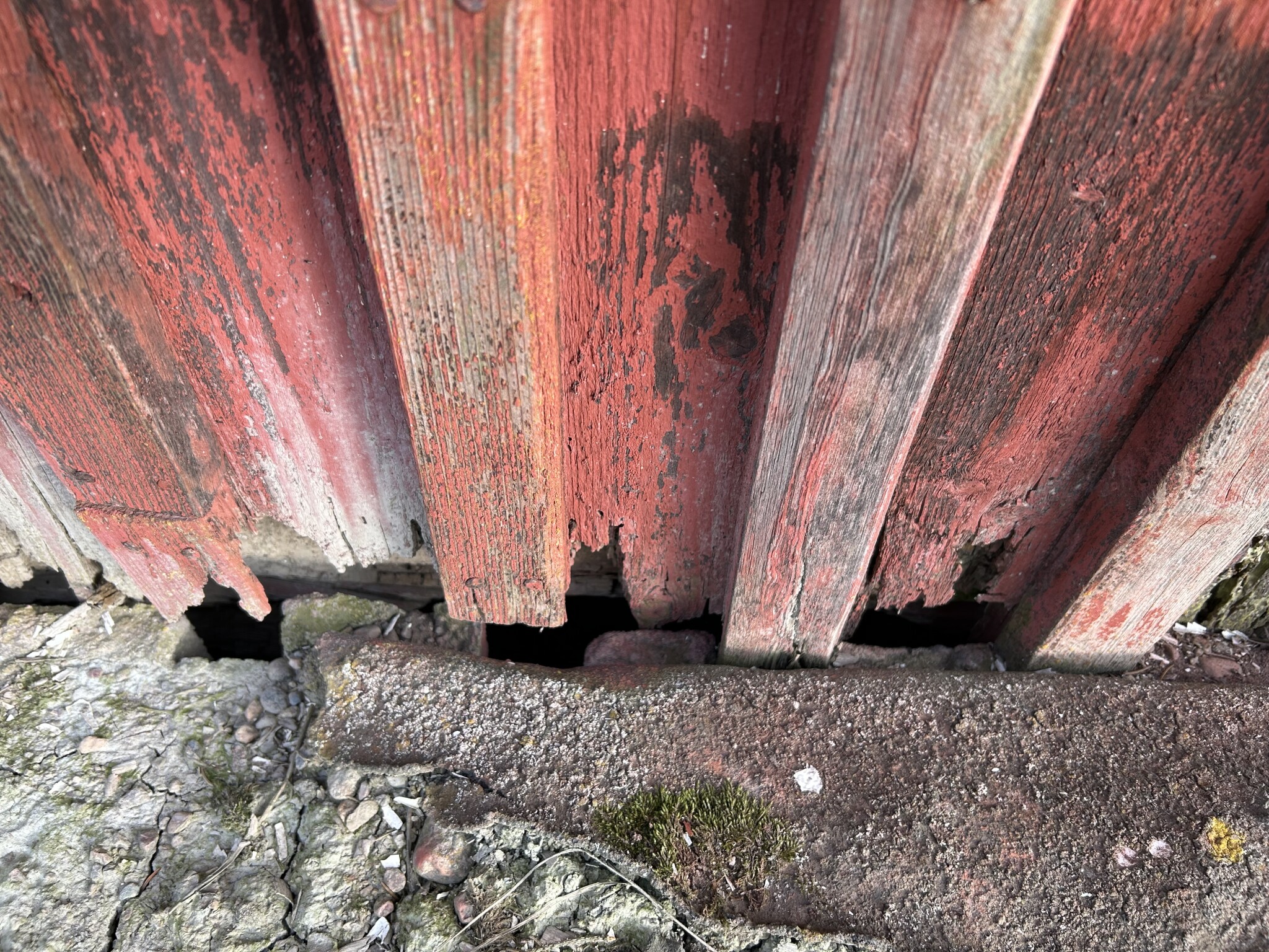 Hej! Jag har en gammal sten ladugård som har träpanel på gavlarna och jag undrar varför det har blivit ruttet längst ner på panelen och vad man kan göra åt det. Innanför är det en loge och upp till den har det troligen gått en log brygga av trä. Sedan har det gjutits en källare under som också används som en log brygga. Vad kan ha hänt?
