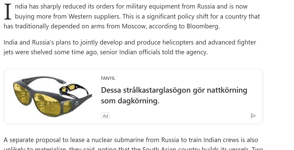 Fast som du ser så handlar det om putin och att dom kommer börja köpa vapen från usa istället.Z Zodde skrev:Msn?