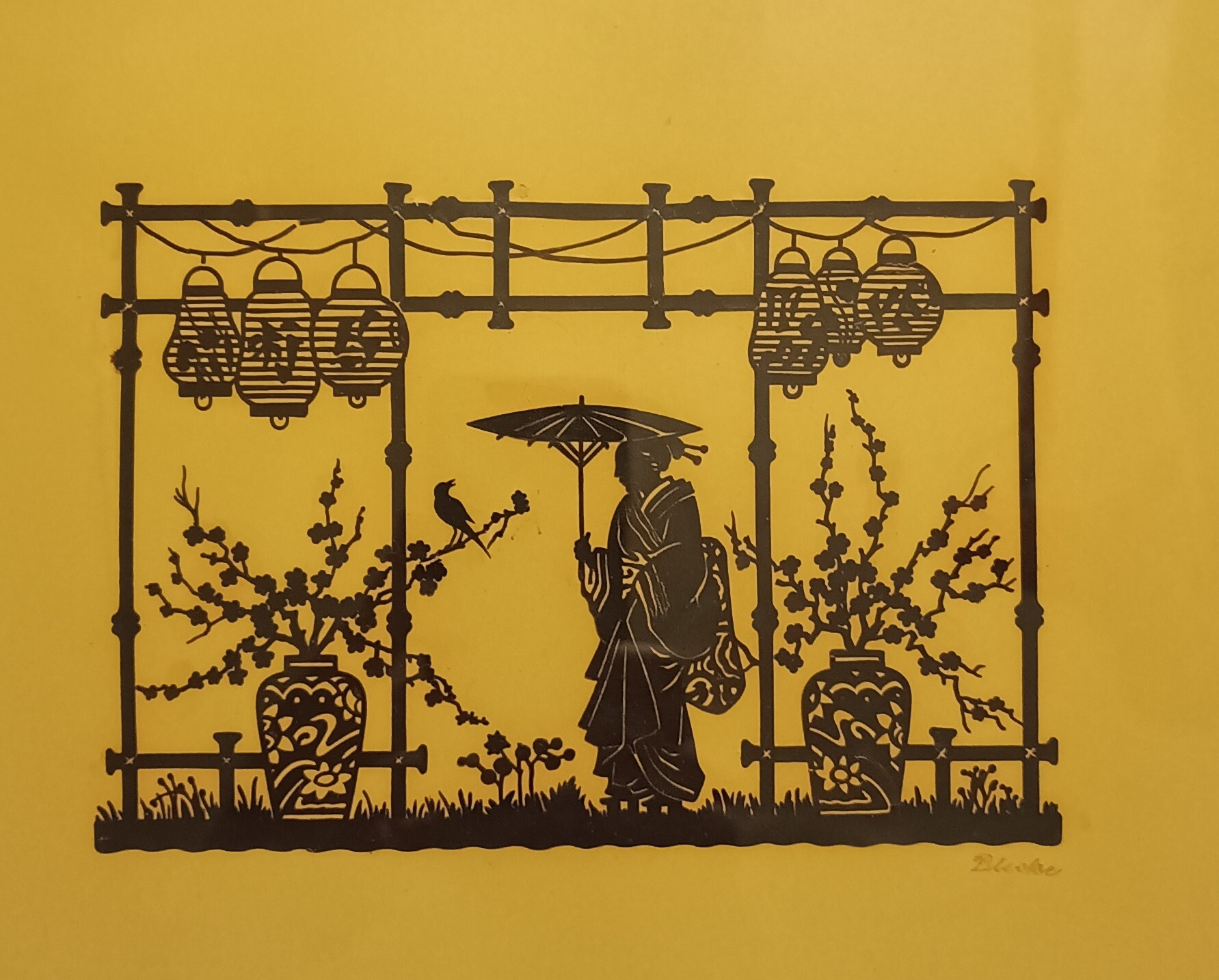 Något som är i stort bortglömt idag är konsten att klippa silhuetter. En vanlig konstform under artonhundratalet eftersom materialkostnaden är så låg. Den första är klippt av den mest kända konstnären inom genren, Johan Leksell 1874-1932. Blev stort uppskattad för sitt porträtt av Rasputin och bjöds in att avbilda tsarfamiljen och gjorde även resor till USA där hans klipp fick goda recensioner . Han var enormt produktiv och cyklade landet runt och sålde sina tavlor som han klippte på fri hand. Tyvärr var han svag för starkvaror och i takt med tilltagande alkoholism sjönk kvaliteten på hans alster betydligt.