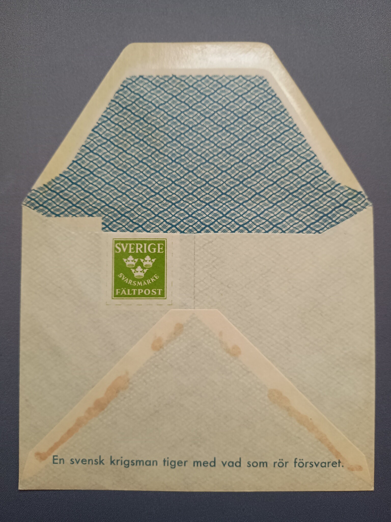 Såna fick vi ut till de längre övningarna på 80-talet, skulle inte förvåna mig om de var från 40-talet för de var gulnade och dana. Hade en kille av rysk härkomst på kompaniet och han roade sig att skicka såna brev till sina kusiner i Petrovsk. När han träffade dem efter muck var de visst lite förbannade. Inte bara hade brevbäraren tittat konstigt och misstänksamt på dem, Det hade visst skrivits några politiskt inkorrekta skämt i breven och någon av kusinerna hade visst haft ett allvarligt samtal med en funktionär av något slag.B Bitterhetsakademin skrev:
