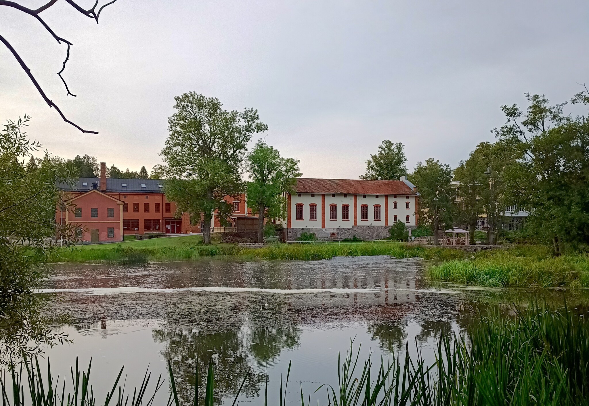 På andra sidan vägen finns en vacker park som grundades av fabrikens ägare på artonhundratalet som idag är öppen för allmänheten.