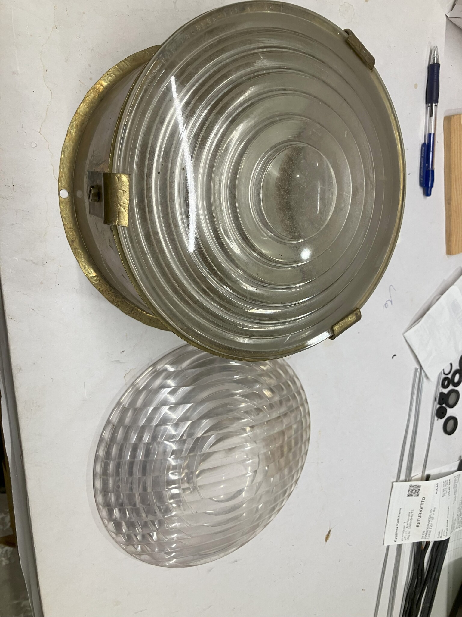 I bilden syns ett helsfäriskt i glas i en mässingarmatur och en plastdito som även har sidobrytningsfält.