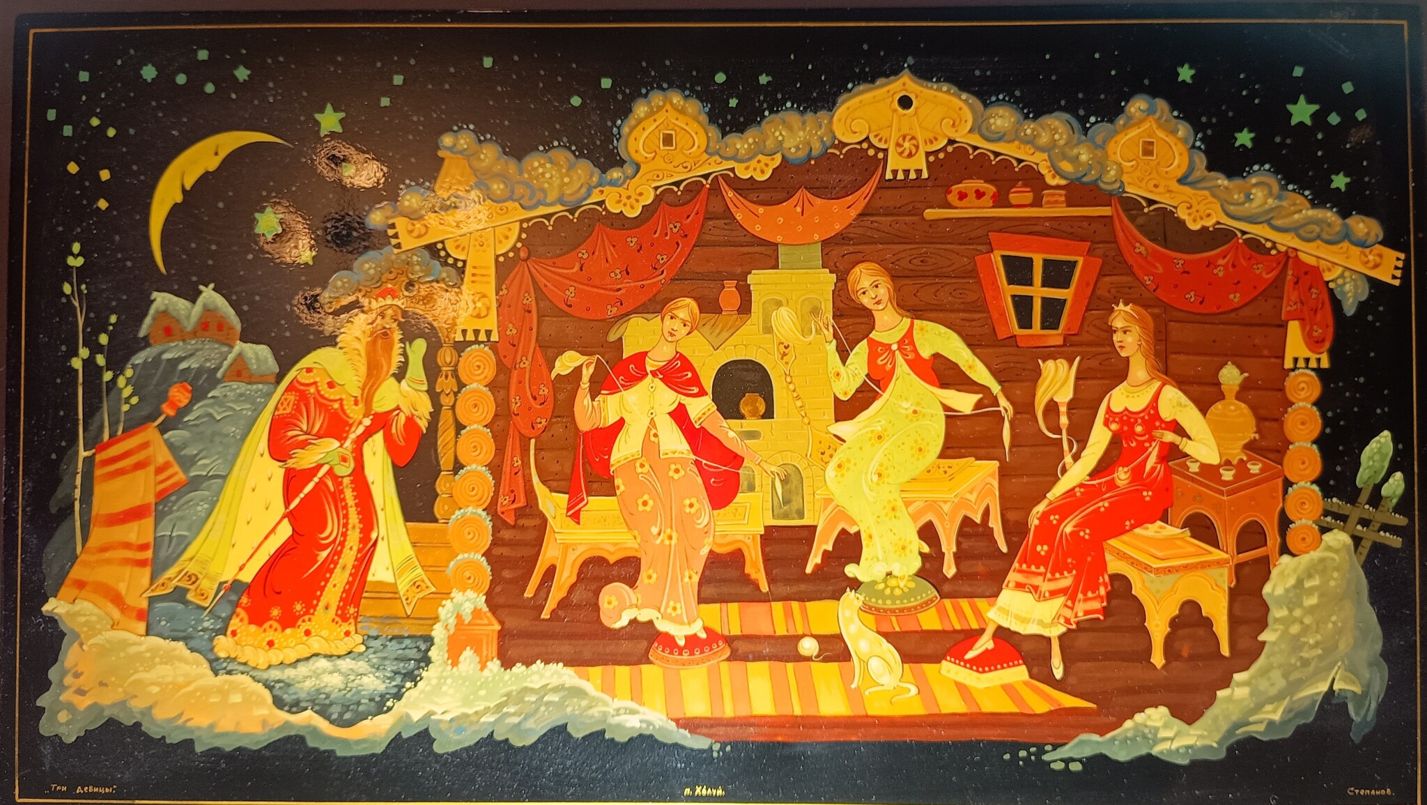 Ännu ett exempel på omsorg om detaljer, ryskt lackarbete målat i tempera på papier mache. En gång i tiden en vanlig souvenir vid sidan av de traditionella ryska dockorna.