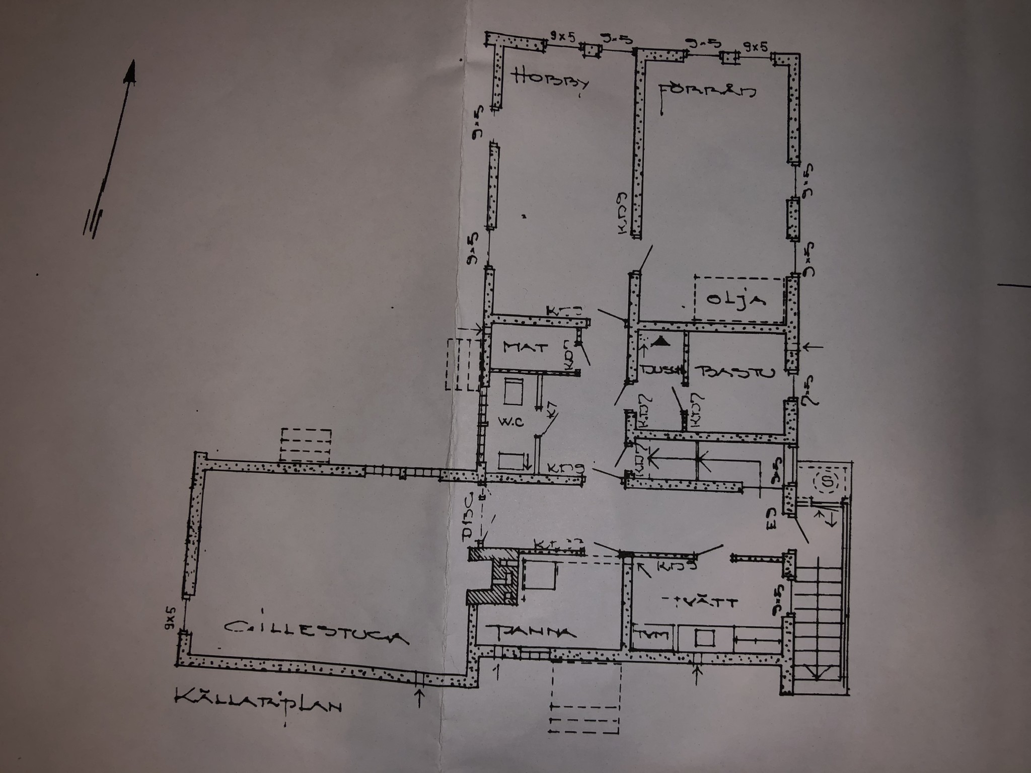 Tänkte förgylla forumet med ännu en "bärande vägg-fråga". Har ett kataloghus i vinkel från Svenska Trähus AB uppfört -68, där tidigare ägare rivit delar av väggen mellan matplatsen och hall/vardagsrum (se ritning). Har inte reflekterat så mycket över detta tidigare då det finns kvar en "nedbyggnad" som jag utgått från varit en inklädd avbärande balk. Nu när vi håller på med en renovering av köket och matplatsen tycker jag mig dock kunna ana att denna "nedbyggnad" eventuellt bara är en liten kvarbliven del av den gamla väggen utan ytterligare förstärkning, och någon bredare dimension än 45 mm skulle det hur som helst inte kunna vara