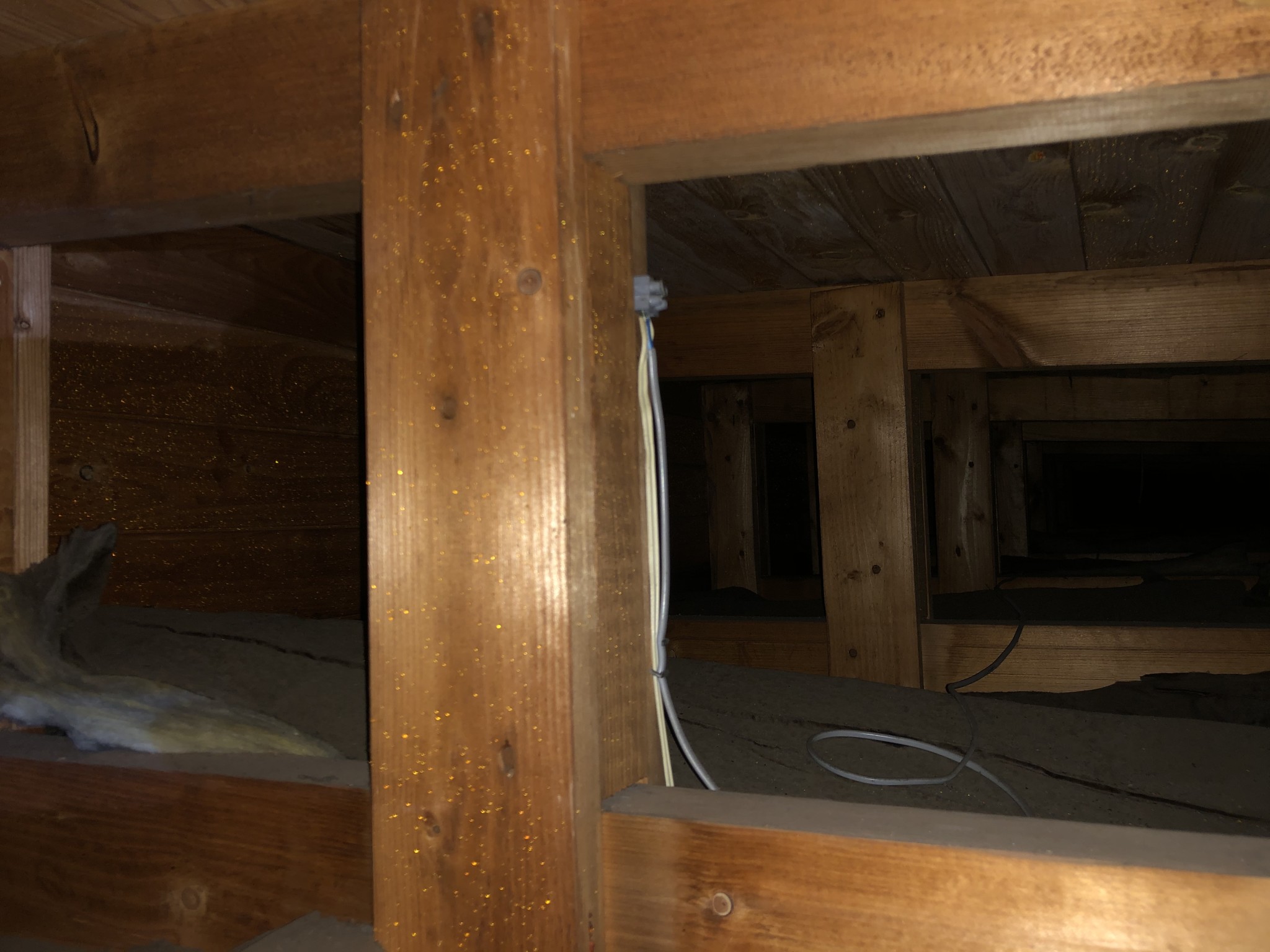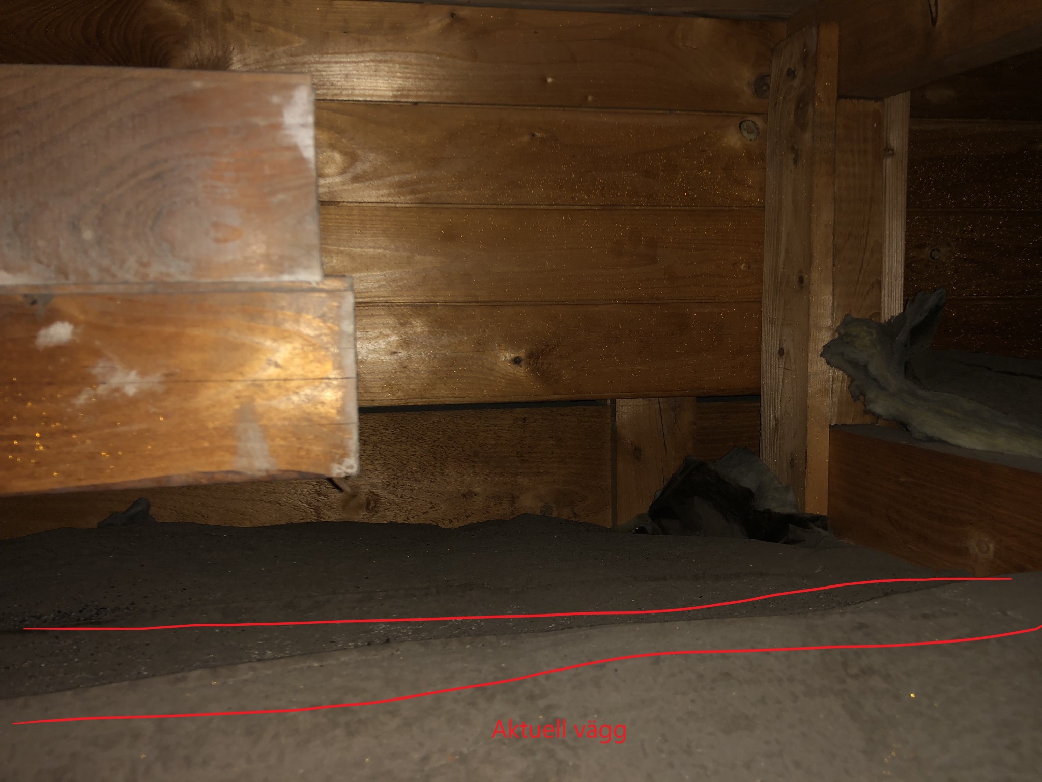 Väggen i fråga utgör/utgjorde en direkt fortsättning av ytterväggen i den aktuella huskroppen, och takstolarna (pulpettak) ligger förstås tvärs denna huskropps längsriktning (grönmarkerad på ritningen). Bifogad bild är ett försök att fotografera in ovanför den aktuella väggen, där det onekligen ser ut som att takstolarna har sitt upplag på den aktuella "väggresten"? Vad tror expertisen? Bör jag ta höjd i renoveringstagen för att vi kan behöva en rejälare avväxling här?