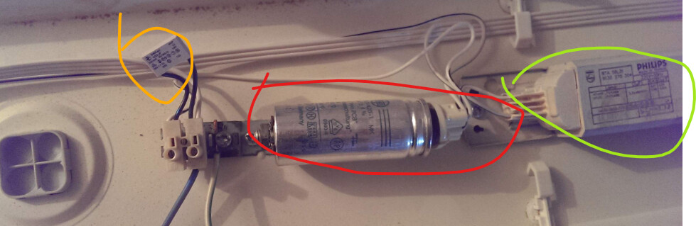 Jag vet bara att det är väldigt gamla armatur inte med med LED alltså. Säkring är 10A och blixten är mer ett sken man ser mellan knapparna precis när det slår ifrån så går säkringen. Är kondensator och glimtändare samma sak? Jag kan testa att byta med ett led rör eller byta glimtändare.Bo.Siltberg skrev: