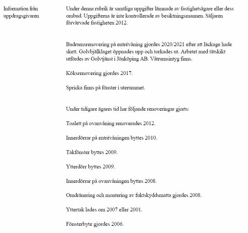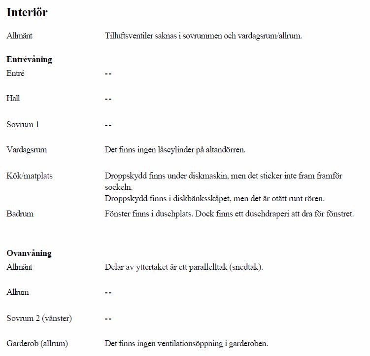 En (medveten) köpare kan ju också ställa frågor som inte ingår i denna besiktning, t ex elinstallationen eller avloppsstammarnas skick och ålder. Det är egentligen mycket viktigare saker än att det behövs ett nytt droppskydd till diskmaskinen.