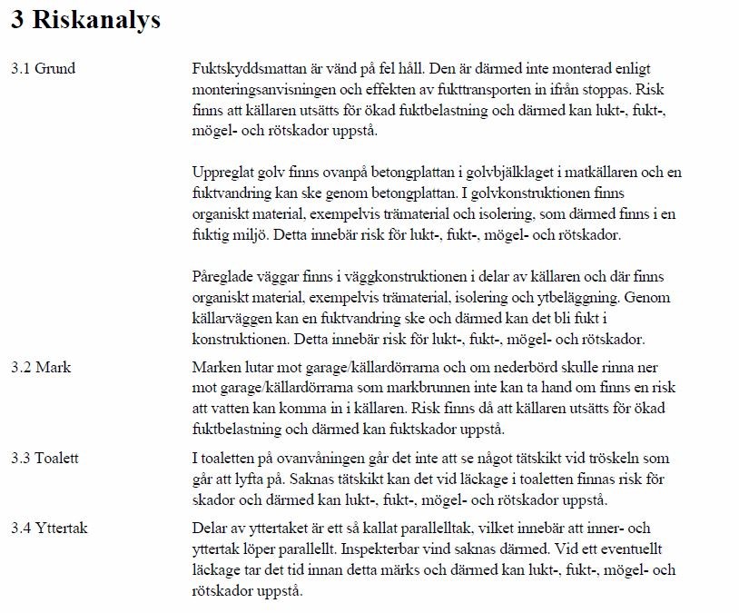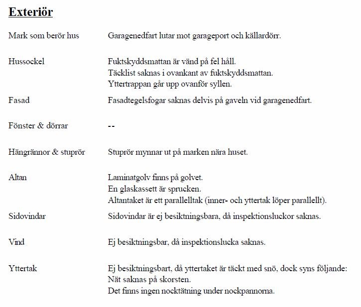 Det var tex inga noteringar gällande dräneringsmattan som är monterad på fel håll.