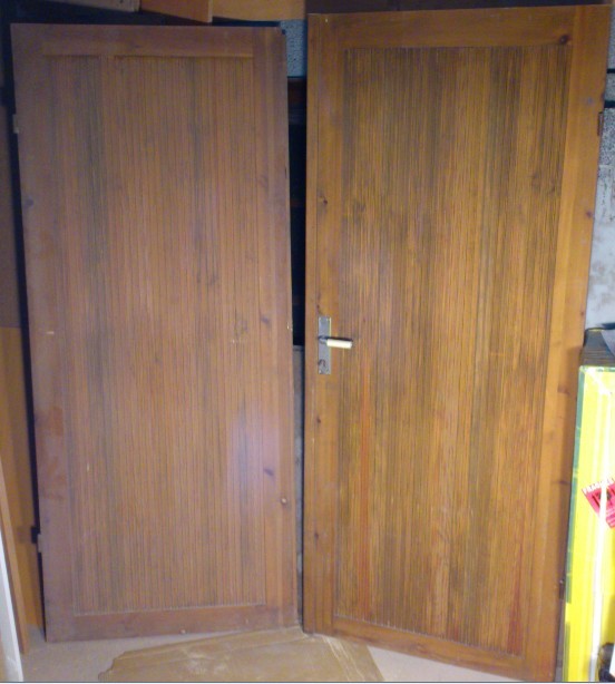 Pardörrar, innerdörrar utan karm. Tror att de är ek. Varje dörrblad är 788x1905mm
