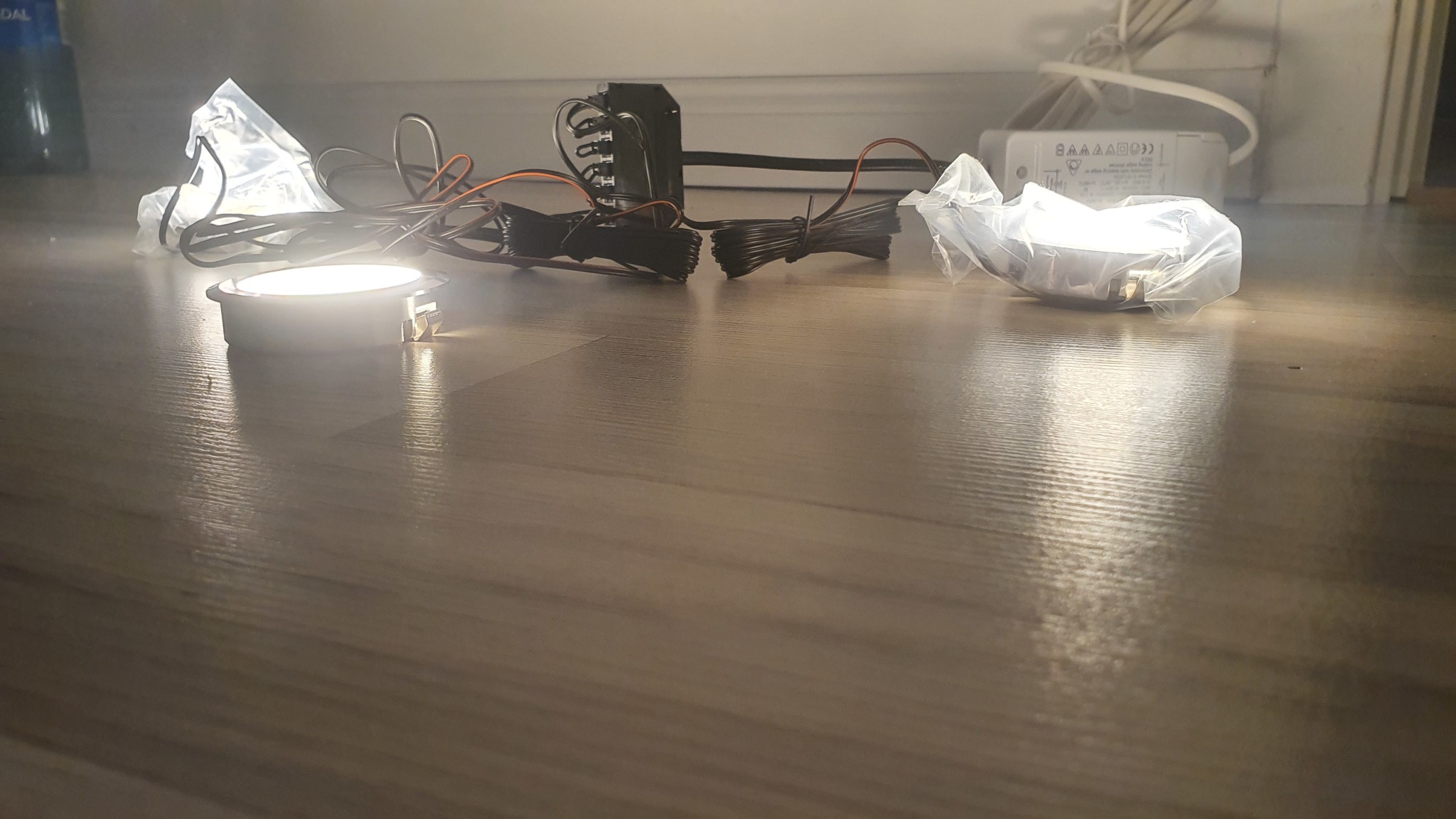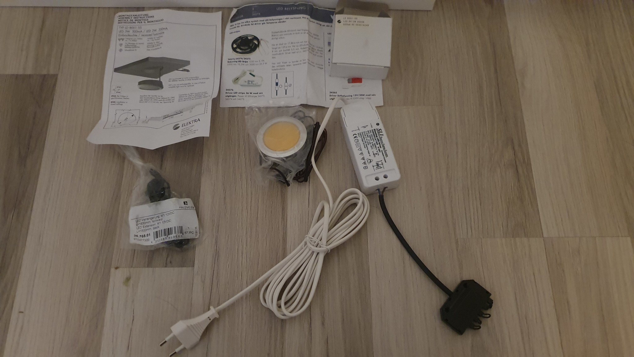 Säljer 45st nya LED downlights för köks- eller möbelbelysning, 13 st Dimbara drivers och 38st förlängningskablar med längd 1800mm om det behövs.
