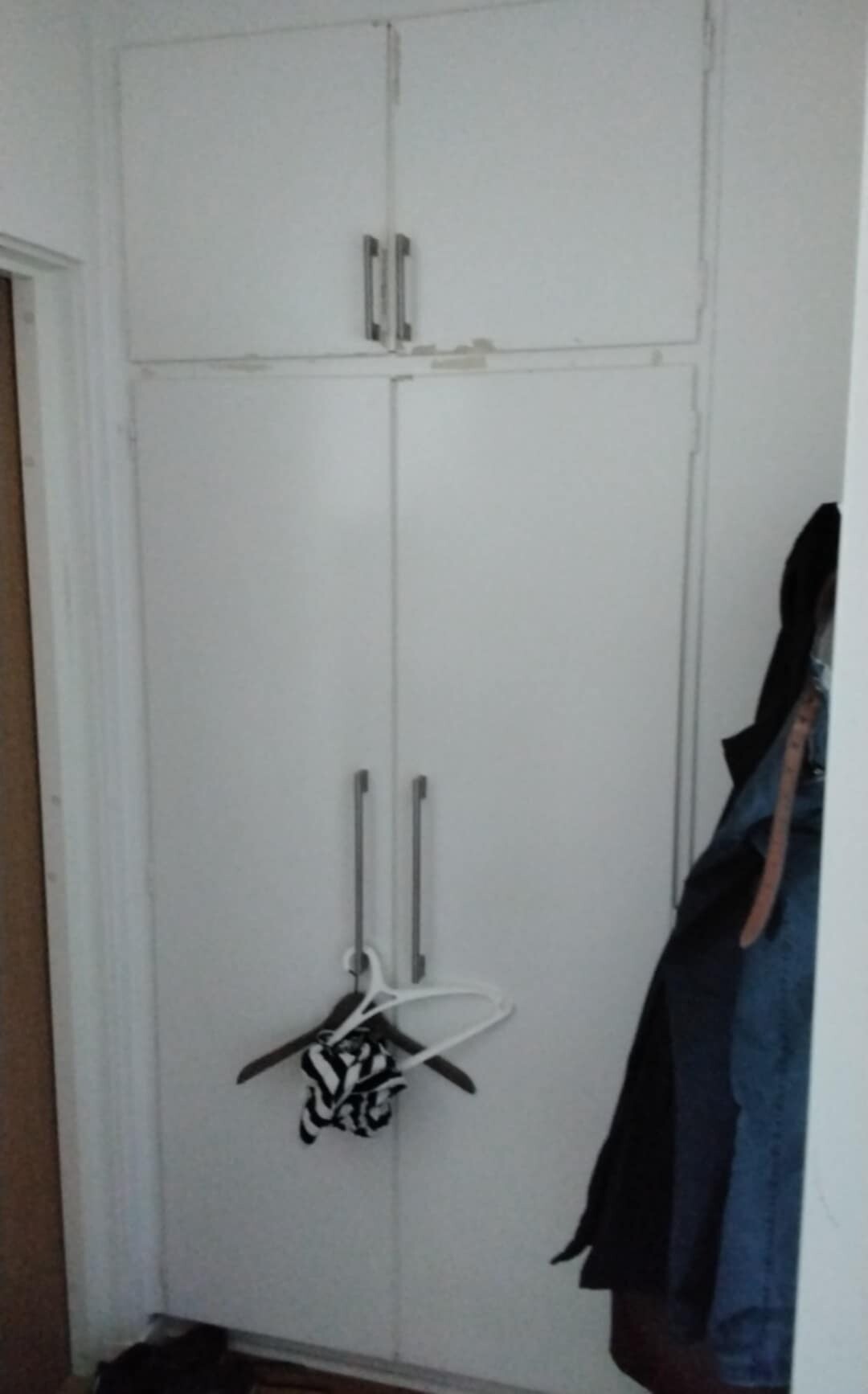 Det är, bedömmer jag, ett visst mellanrum mellan garderobsväggen och husväggen och garderobsväggen går inte ända upp till taket.