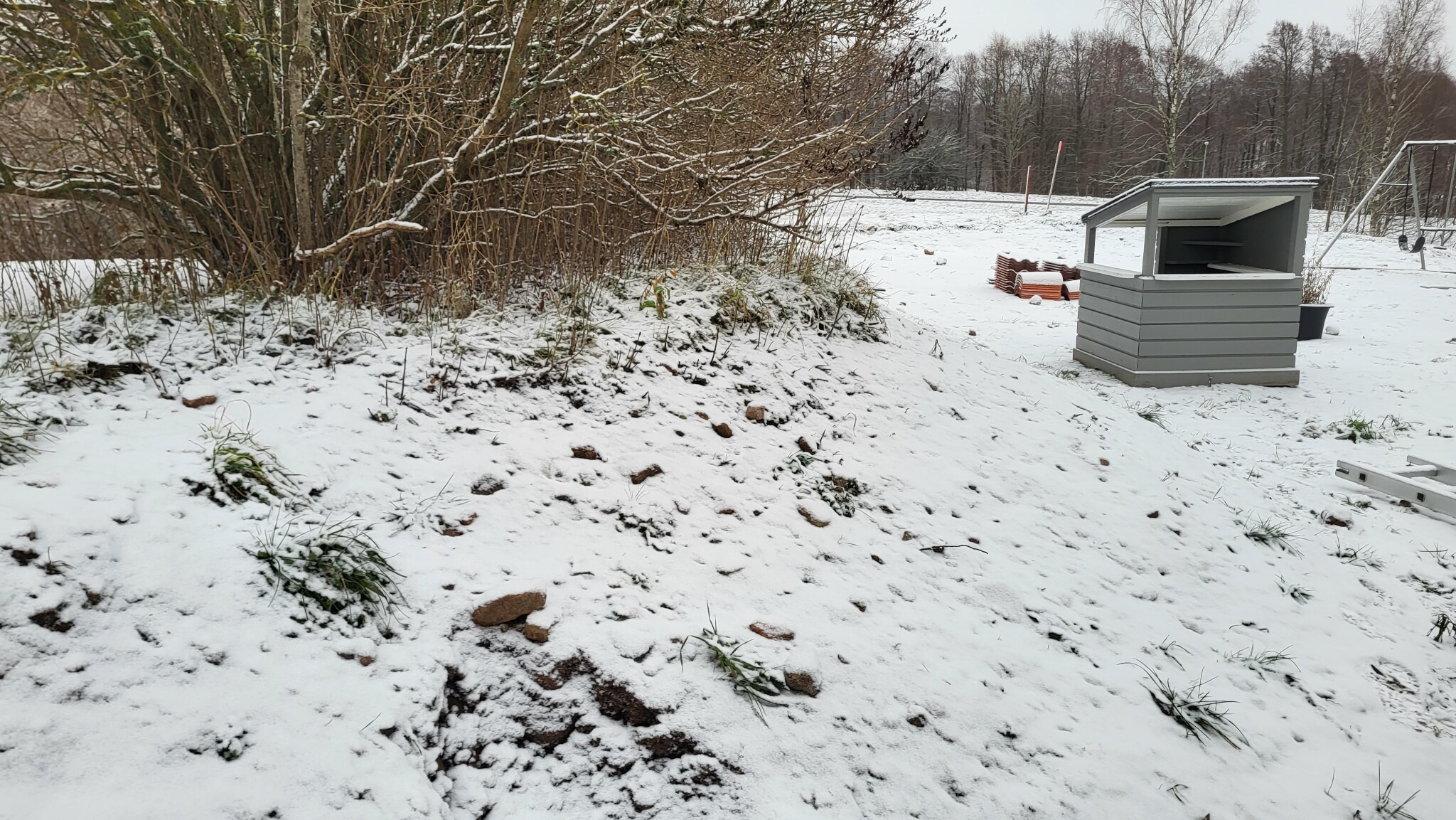 Bifogar en bild, det är ca 150cm från syrenens stammar till släntning börjar nu, sedan ca 150cm bred slänt. Höjdskillnad 50-100cm på olika ställen.
