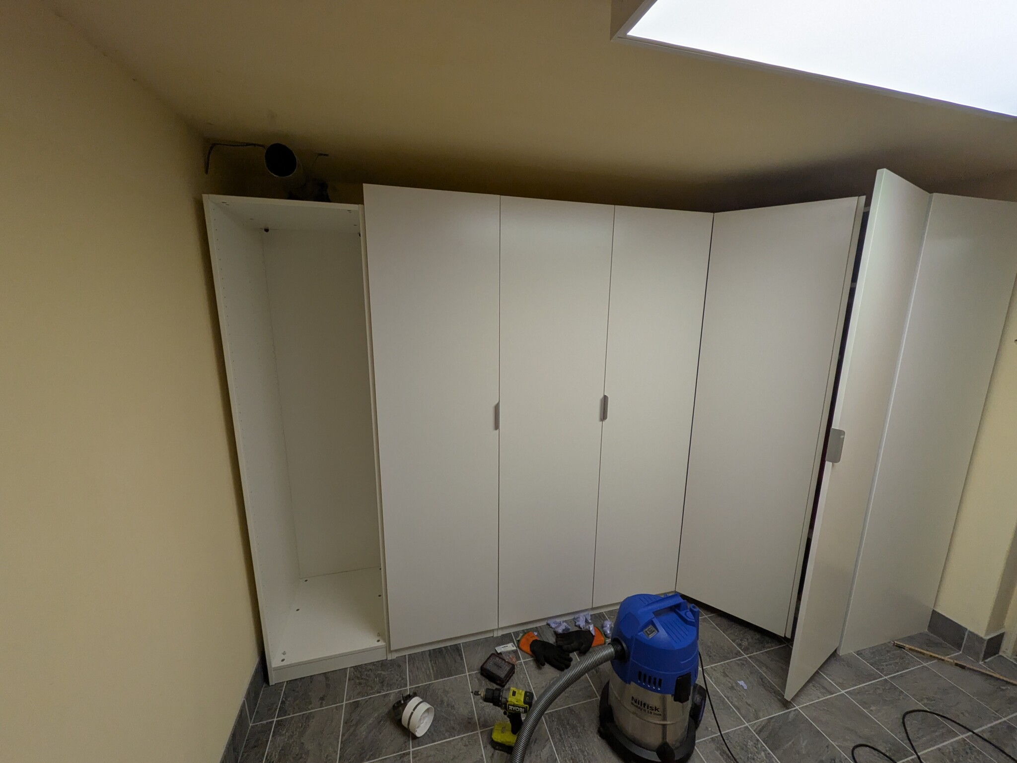 Hej! Jag har en tvättstuga jag håller på att inreda. I den har jag smällt upp en ikea pax garderob.